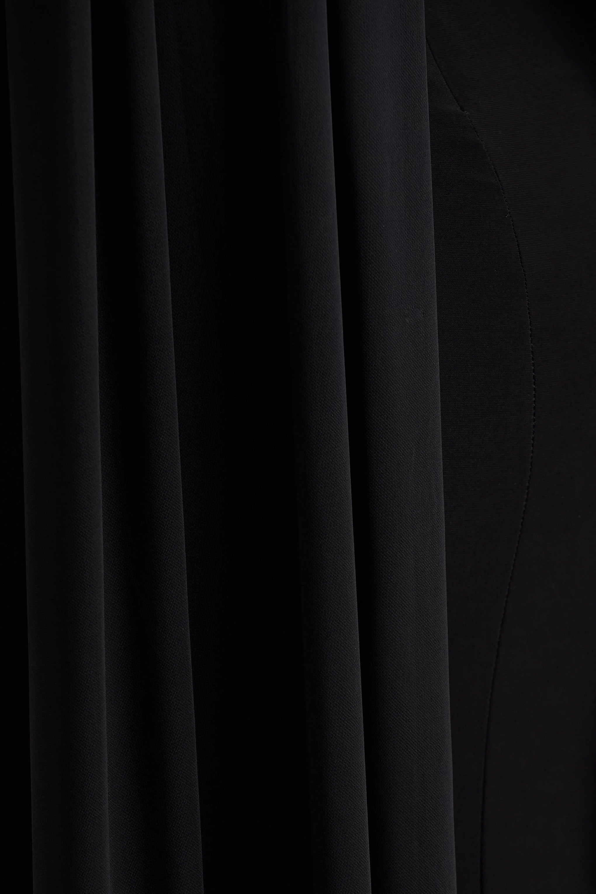 Turn heads with quiet drama in Amour, a statement in sleek sophistication. Crafted from our premium stretch jersey in a timeless black tone, this maxi dress glides effortlessly over the figure, balancing structure with elegance. The high neckline adds a refined edge, while a sheer mesh cape overlay brings ethereal movement and subtle allure. A centre-back split adds a hint of fluidity, allowing every step to feel as effortless as it looks. Style with a delicate clutch bad and statement earrings for a look that'll captivate the room.