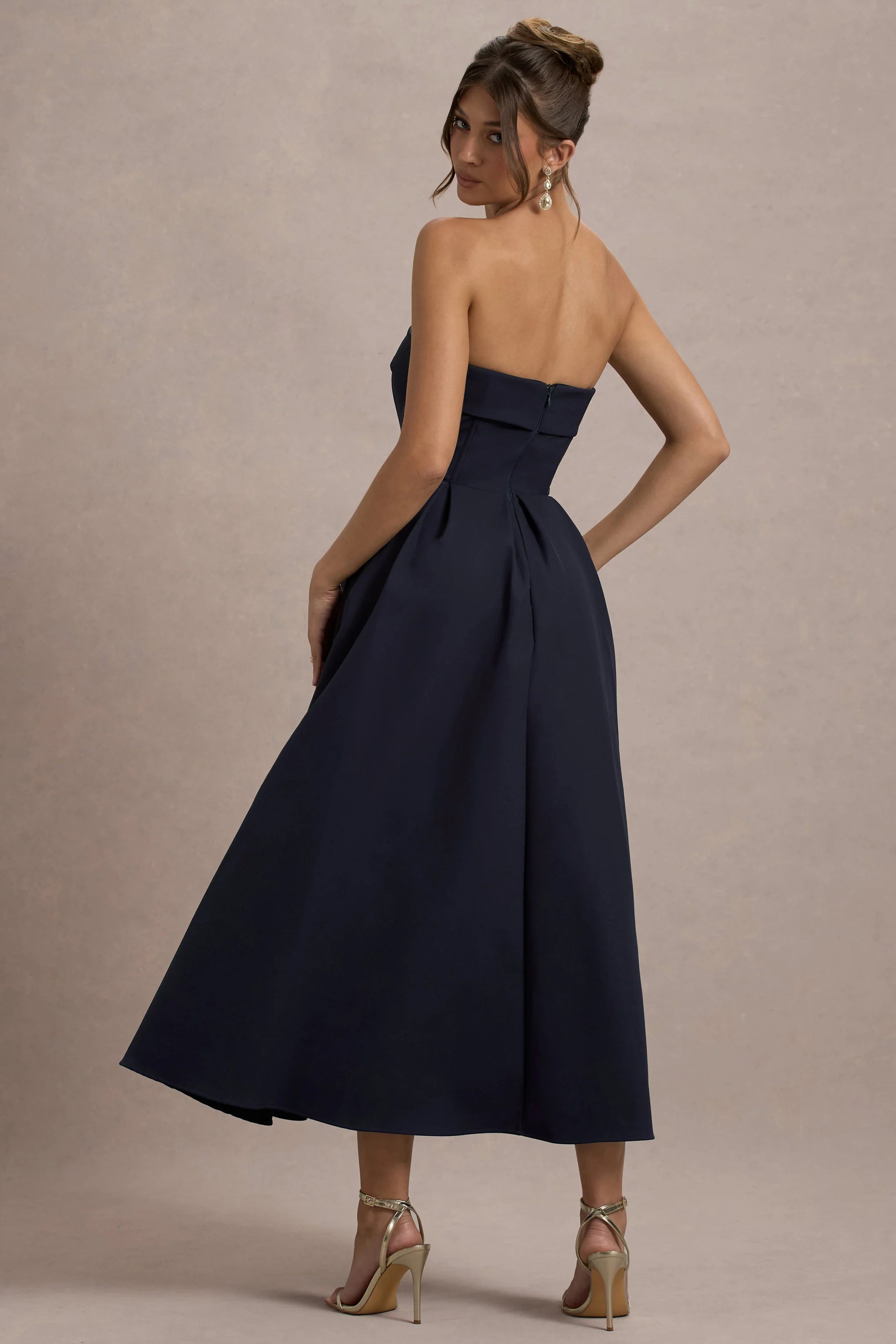 You name the occasion, we have the perfect dress. Crafted in a rich navy shade of our premium stretch crepe, Annalise effortlessly compliments every skin tone. Beautifully flowing with a cinched in waist, this midi dress boasts a pleated skirt that creates an elegant sense of movement. For a timeless race day look, try styling yours with some simple gold earrings and strappy stilettos.