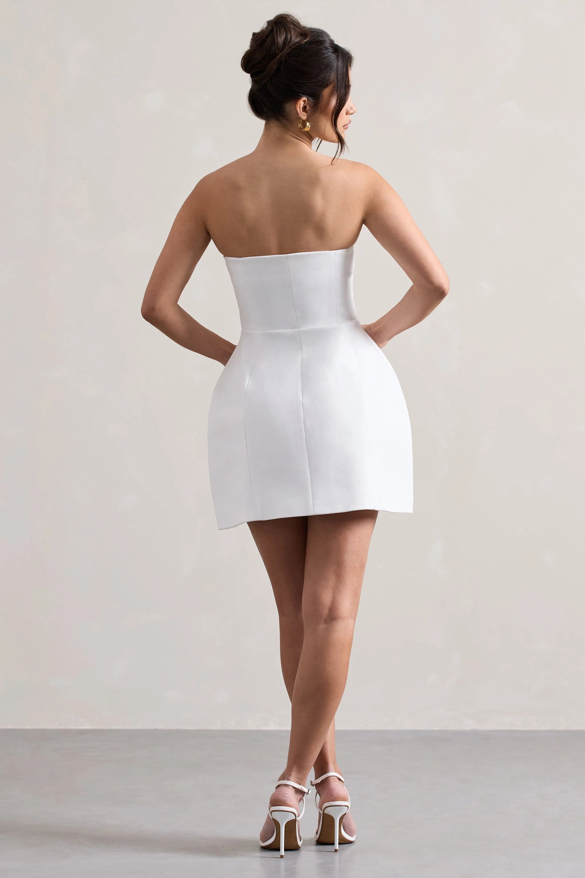 A capsule wardrobe must-have is Anniston. This staple white mini dress has been crafted in a premium cotton modal and boasts a timeless tailored silhouette. Detailed by a bandeau neckline and a buttoned bodice this mini couldn't be any more perfect.