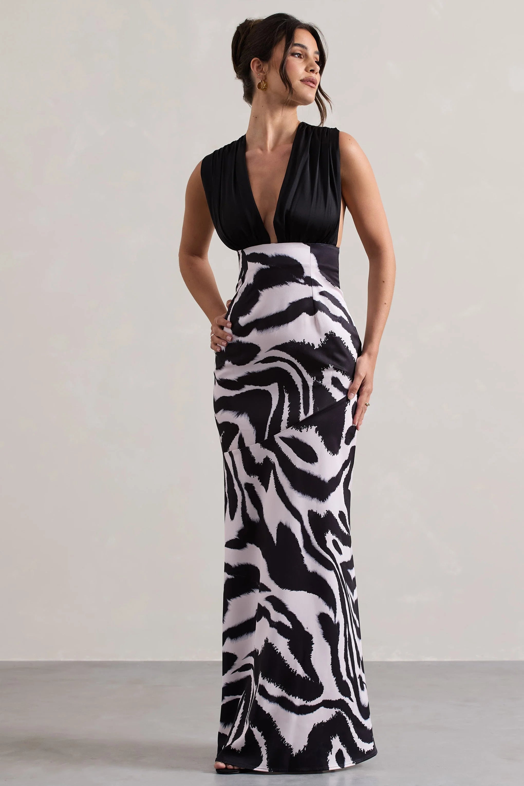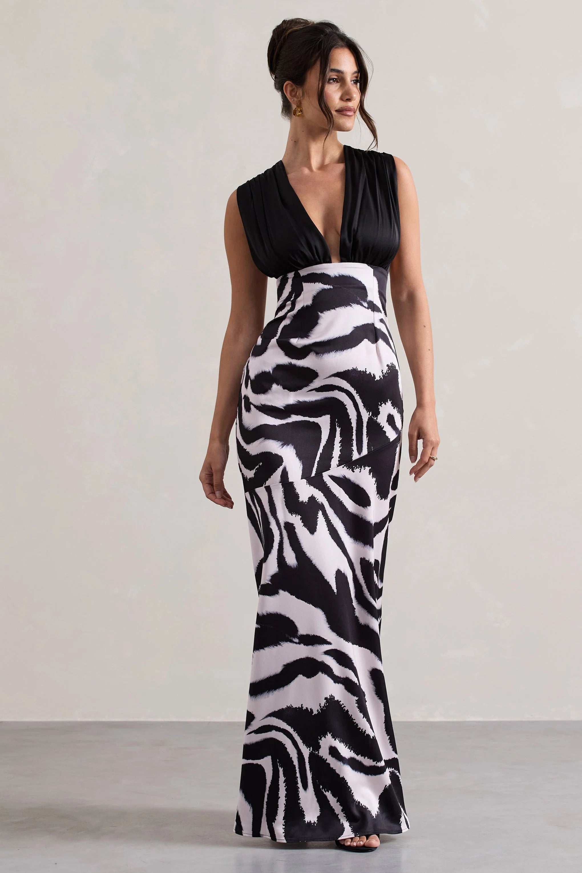 Introducing the dress of the season, Azzara is our sophisticated yet summery maxi dress. Crafted in a bold zebra print shade of a premium satin that drapes and hugs your figure in all the right places. Azzara showcases a feminine V neckline with thich ruched straps, style this stunning maxi with a tousled bun for the ultimate summer evening attire.