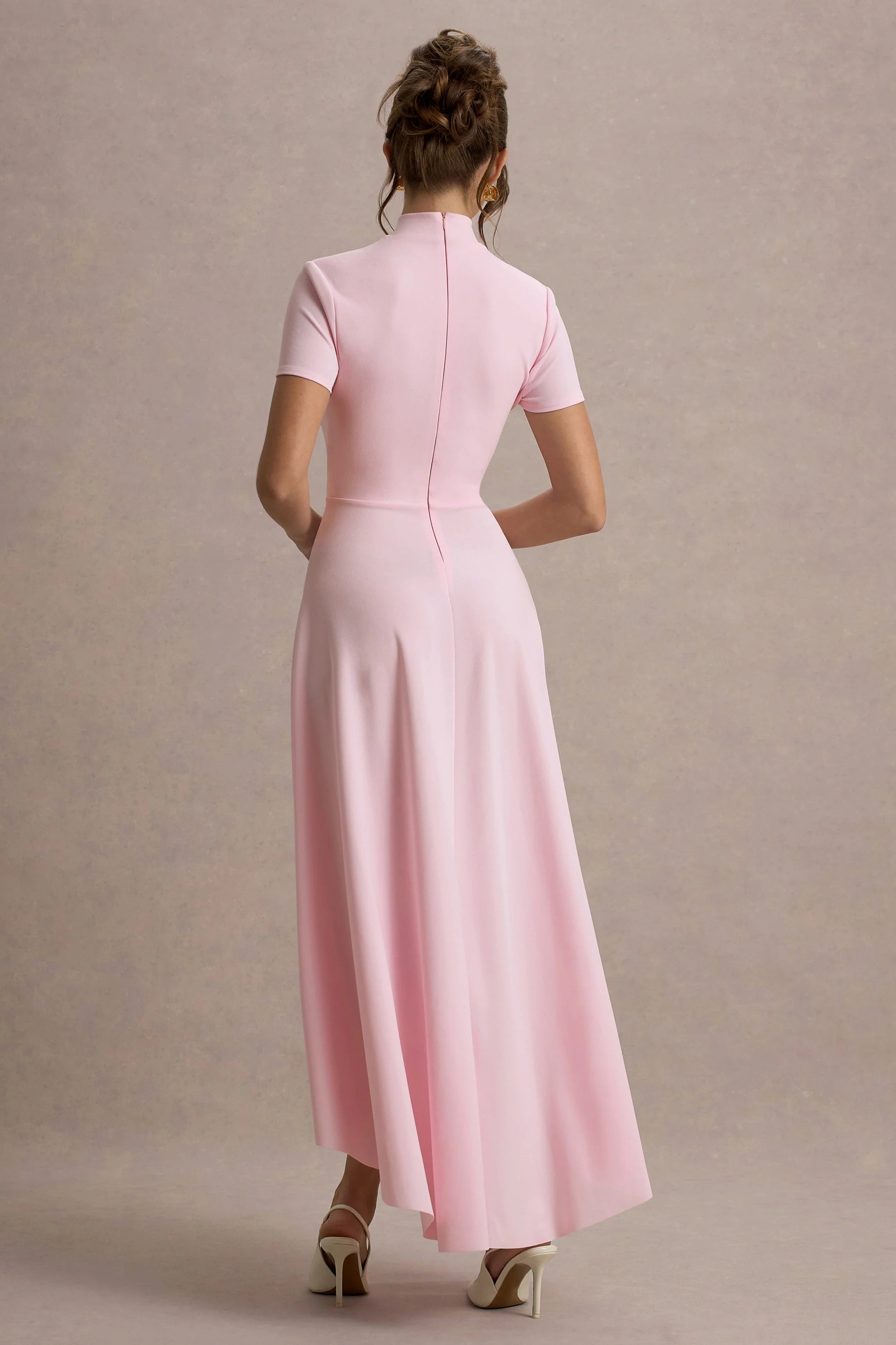 Defined by contemporary elegance and striking details, Bellona is a standout choice for your next special occasion. Crafted from our premium scuba crepe in a rich pink hue, this midi dress features a refined high neckline that exudes sophistication. The fitted bodice flows into a dramatic high-low hem, creating a dynamic silhouette that commands attention. Pair Bellona with a bold clutch for a look that perfectly balances modern style and timeless grace.