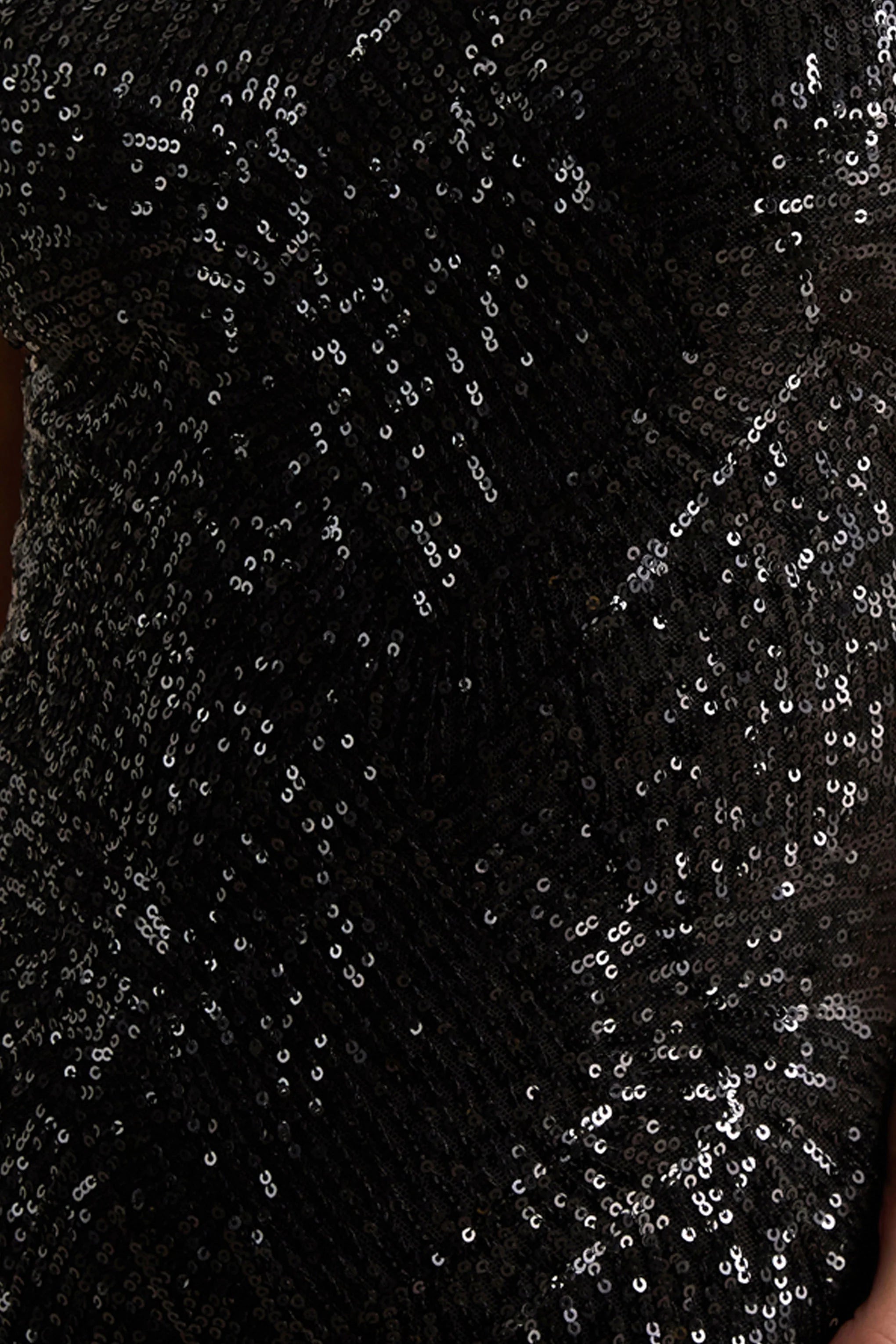 Make a dazzling entrance in Cecy, a timeless design that embodies effortless sophistication. Crafted from our premium black sequin, this stunning maxi dress shimmers beautifully with every step. The elegant high neckline and chic cap sleeves create a refined silhouette, perfect for the most glamorous of occasions. Sleek, striking, and endlessly captivating- Cecy is made for memorable moments.