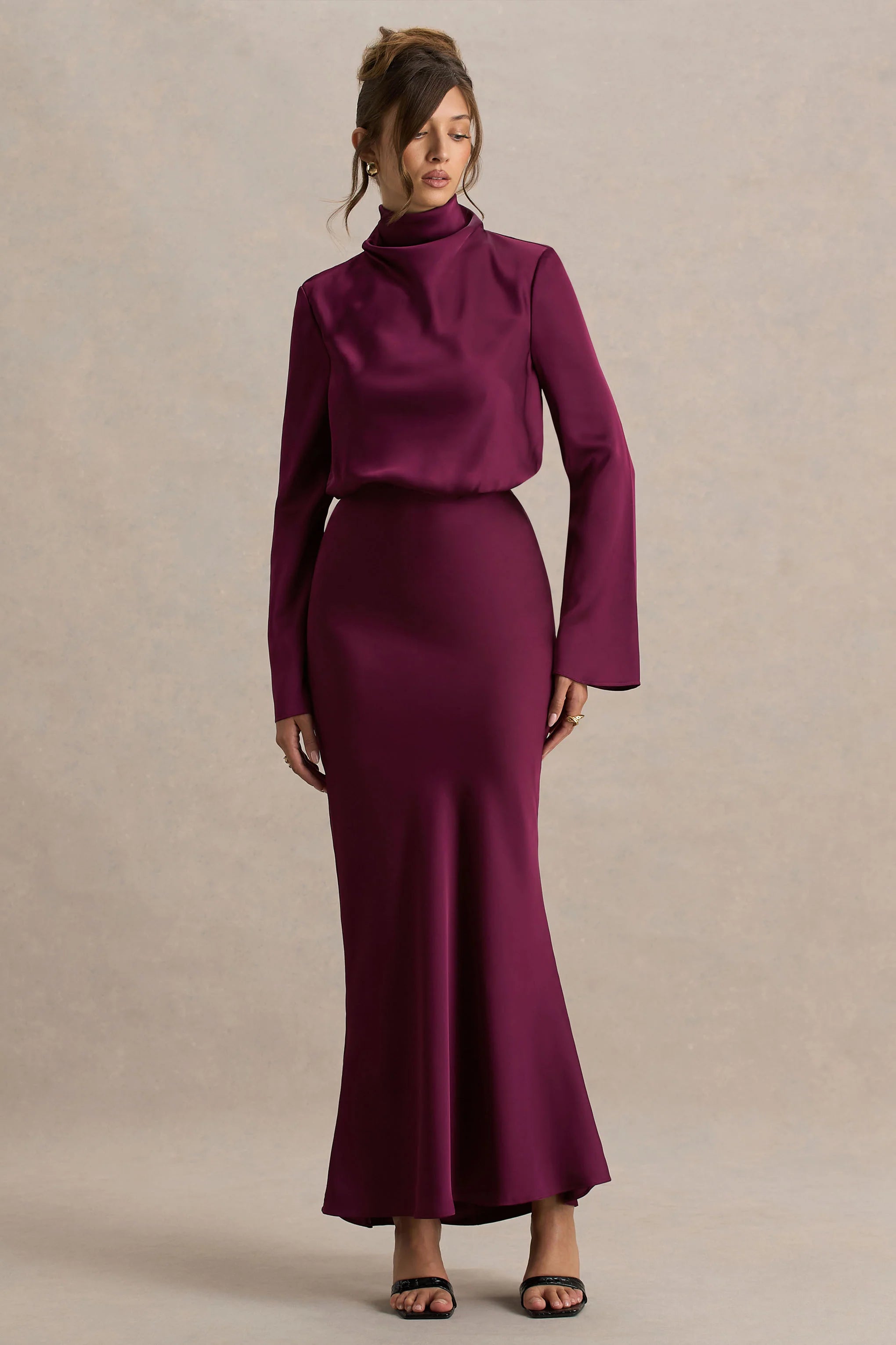 Defined by elegance, our Celina maxi has arrived. Cut in our chic stretch satin, in a delicate shade of burgundy. Perfected with fine details, including a gathered waist to flatter your figure from every angle as well a keyhole back detail, with a functional tie. This piece is the epitome of elegance, pair with some dainty jewellery to tie the look together.