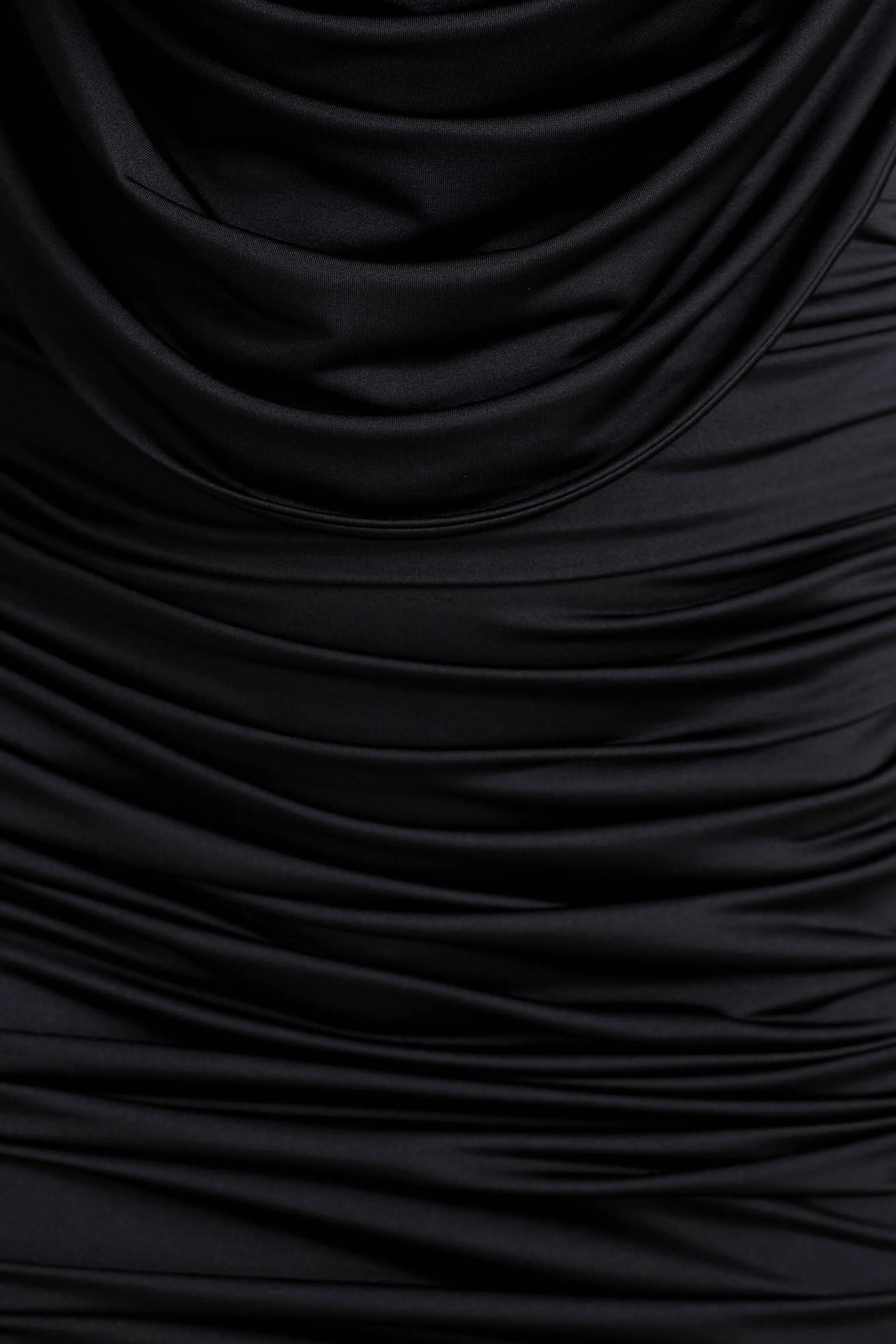 Own the night in Ciela, a daring statement piece made for the spotlight. Cut from our premium black disco jersey, this mini turns heads in any room. Featuring an extreme plunge neckline and bold shoulder pads that command attention with modern elegance, Completed with a figure-hugging, ruched skirt that sculpts you seamlessly, Ciela is the ultimate party look of the season.