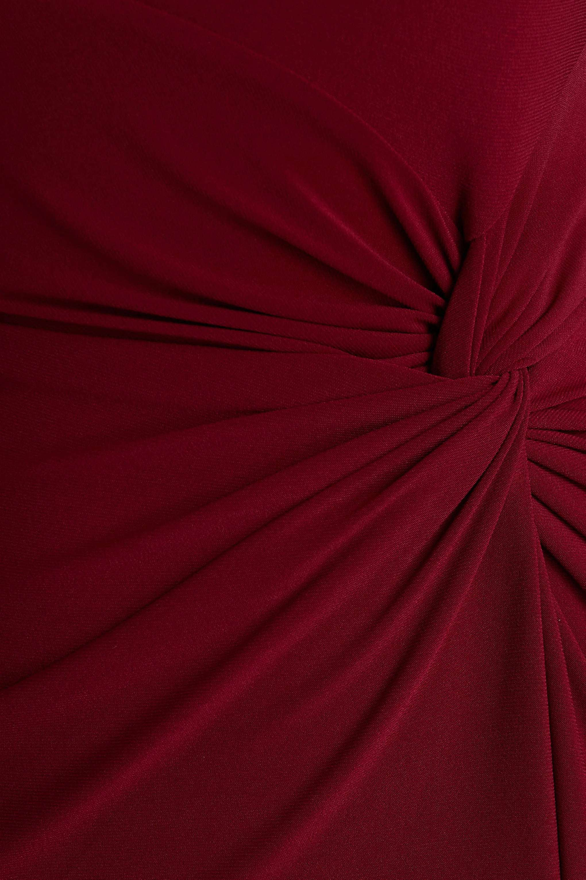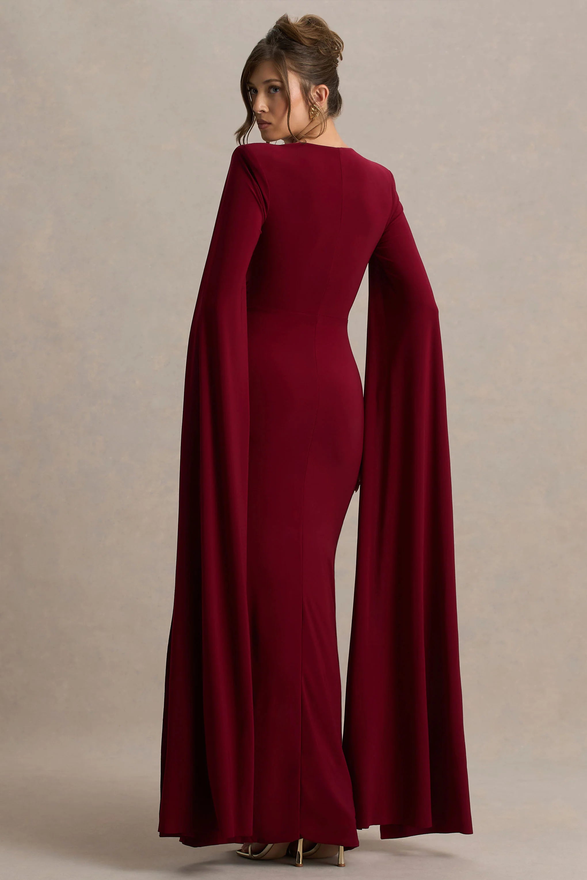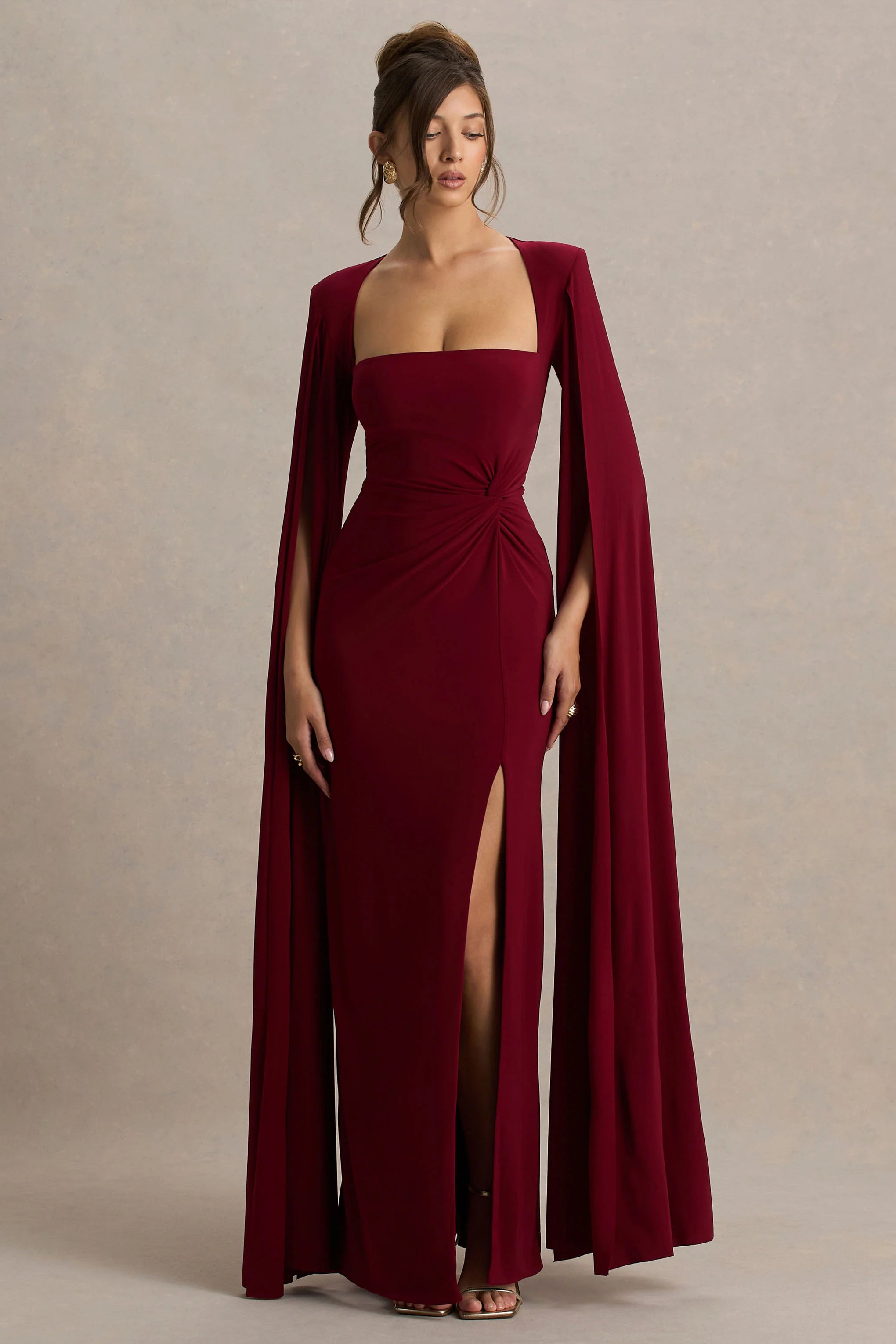 Channel sophisticated elegance in Claretta, our berry maxi dress. Crafted in a premium stretch jersey, this sweeping scene-stealer boasts a sculpting square neckline, twisted waist detail and long, cape sleeves. Made for special occasions, elevate yours further by styling it with some stilettos like Bowing.
