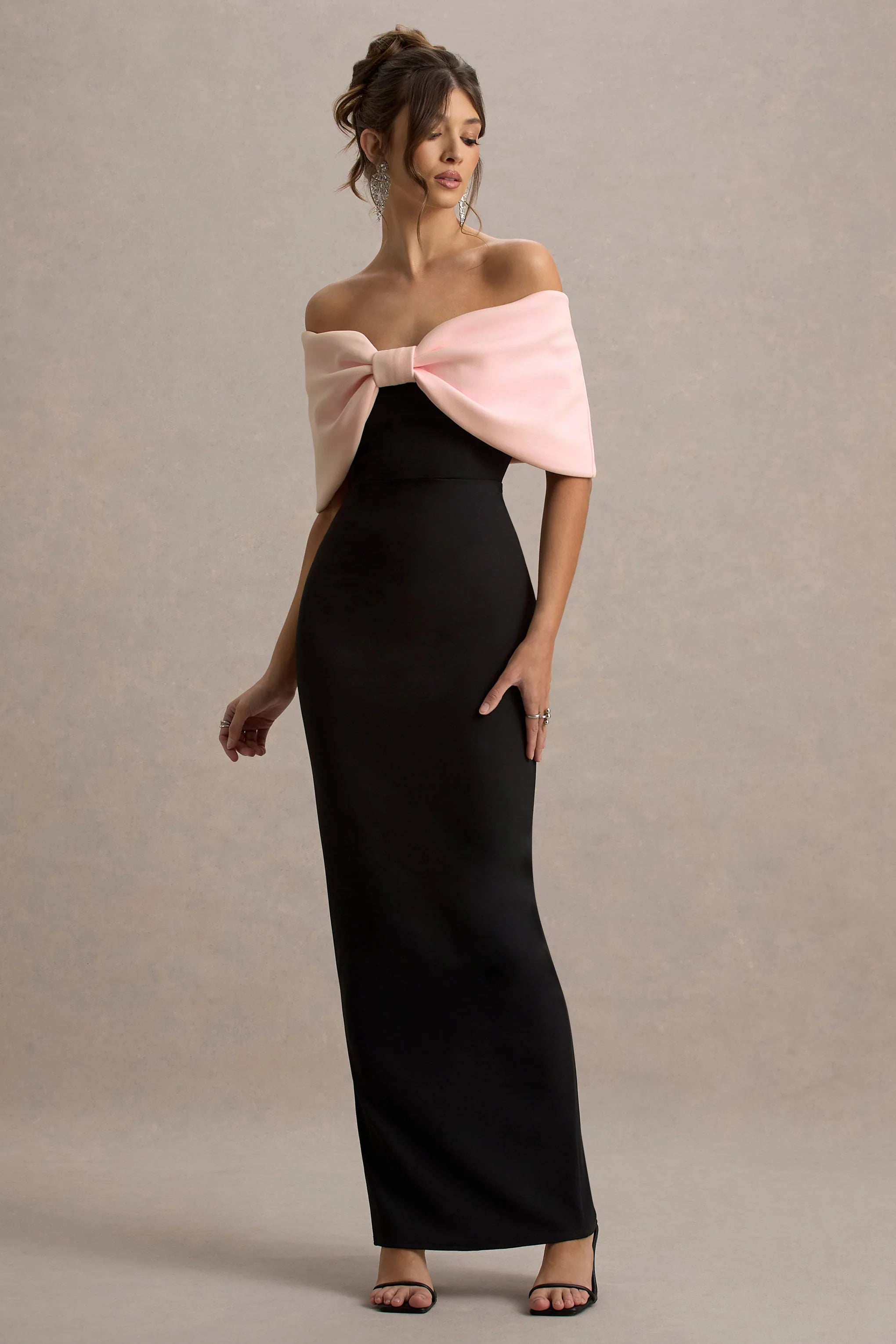 Cornelia is the ultimate showstopper in every room, arriving in a pink and black shade of our premium scuba crepe. This maxi dress is bound to leave you feeling like a million dollars with its captivating statement bow neckline. Turn heads in the Cornelia by pairing it with our opulent Opalia necklace.
