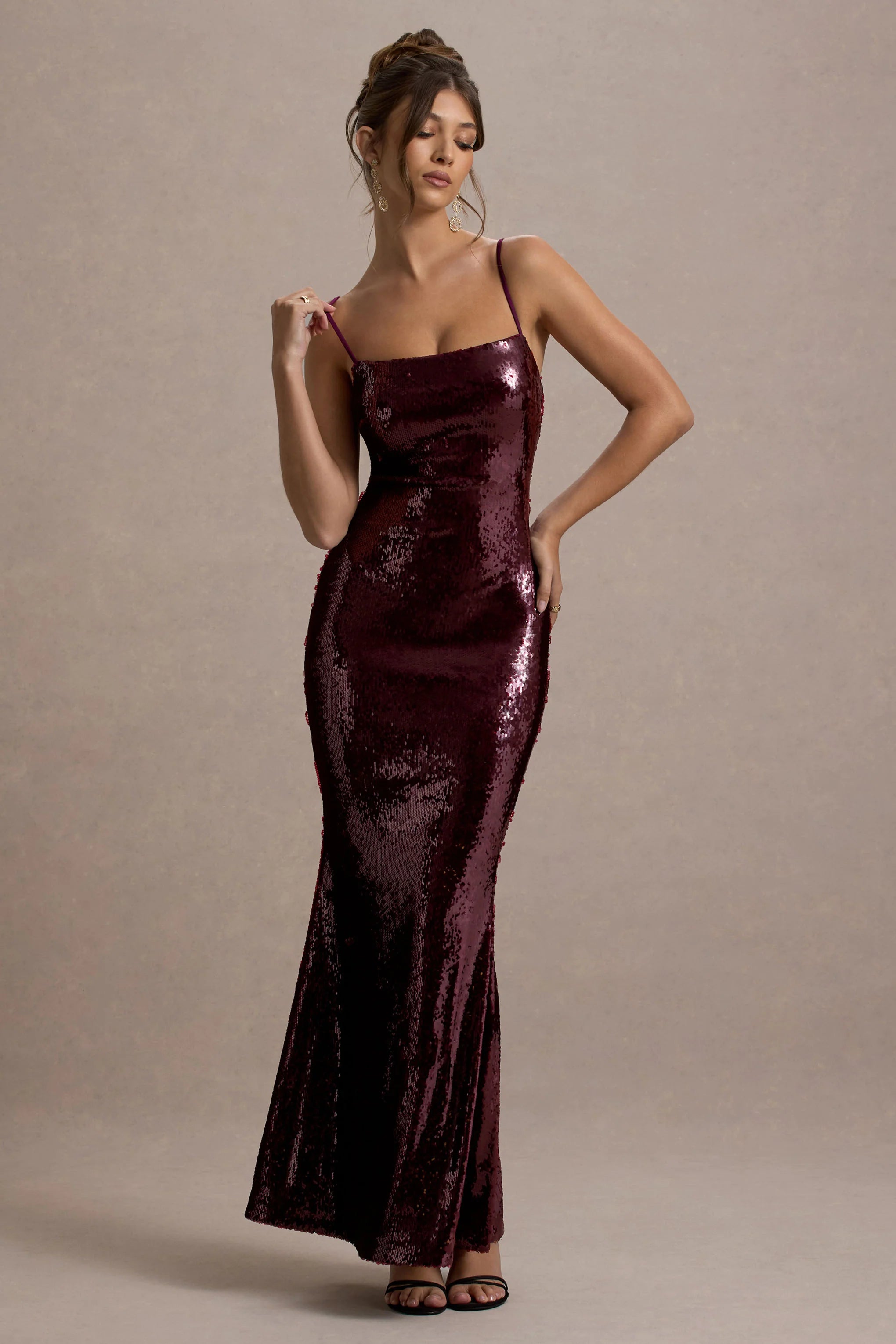 Defined by its dazzling allure and vibrant colour, Crystalline is a show-stopping choice for your most glamorous occasions. Crafted from our premium sequins in a rich berry hue, this maxi dress is designed to catch the light from every angle. The delicate strappy neckline highlights your shoulders, while the figure-hugging silhouette flatters your curves for a sultry finish. Keep Crystalline at the centre of attention with a bold lip for a look that promises to turn heads all night long.