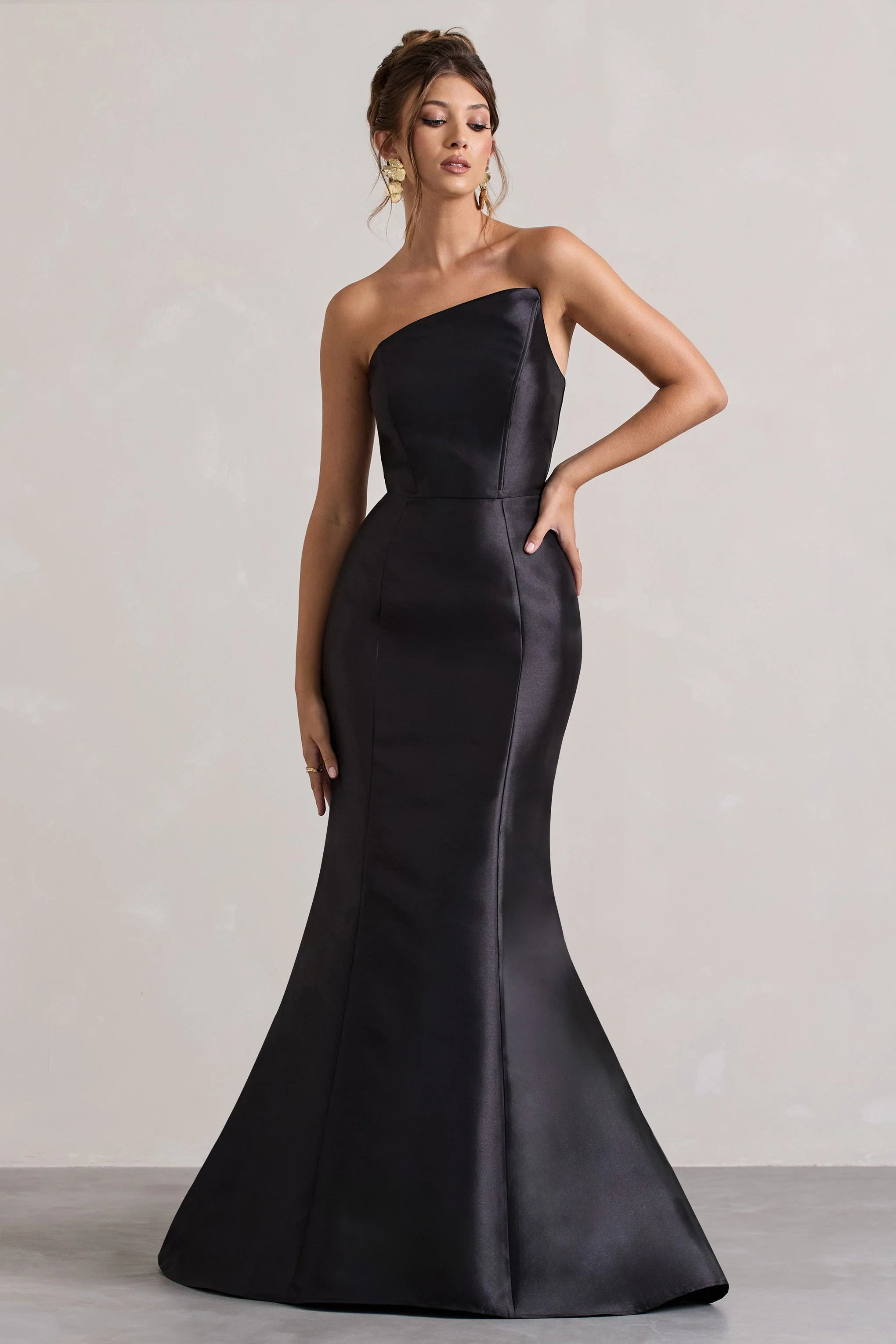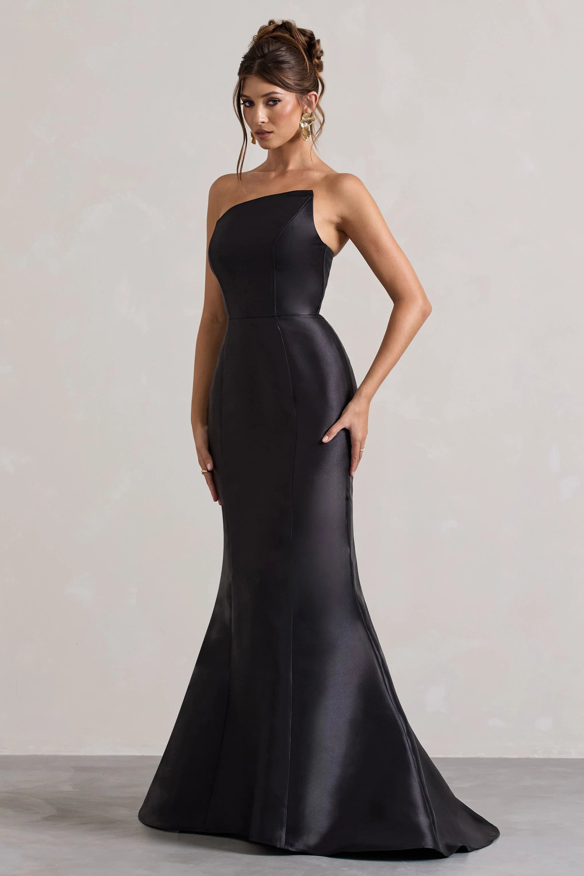 A dress that will set you apart from the rest is our latest maxi, Define. This stunning dress arrives in a staple black satin and boasts a simplistic silhouette with contemporary details like its asymmetric neckline and bold fishtail skirt. Style yours with a tousled bun to keep it at the forefront of your next event.