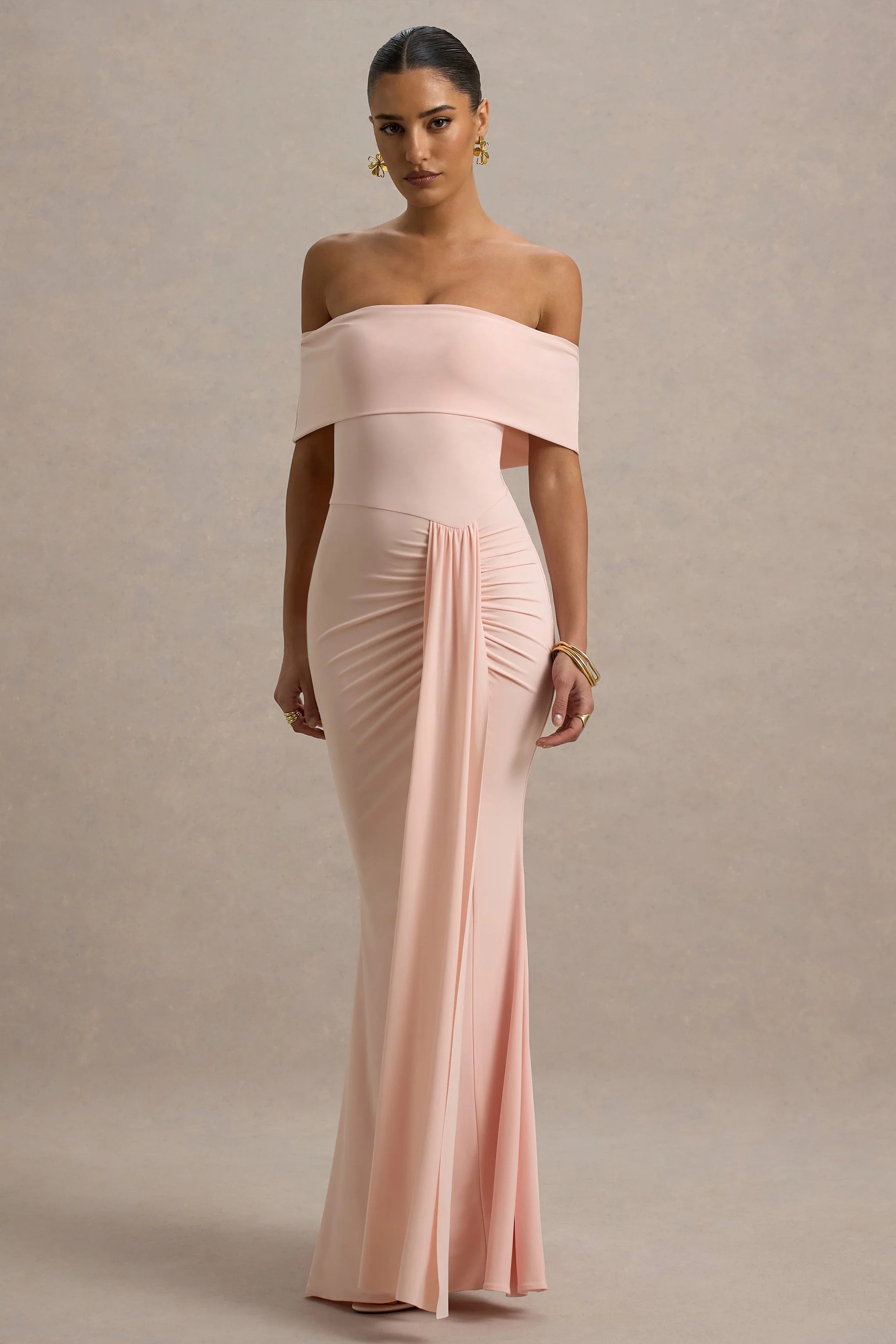 Capture the rooms attention in the maxi of the season, Delma, A must have this season. Designed in our premium stretch jersey, for a figure flattering finish, in a rich pink hue. Finished with a chic bardot neckline and an elegant ruched, sash detail to tie the look together. In this dress you wont be forgotten.