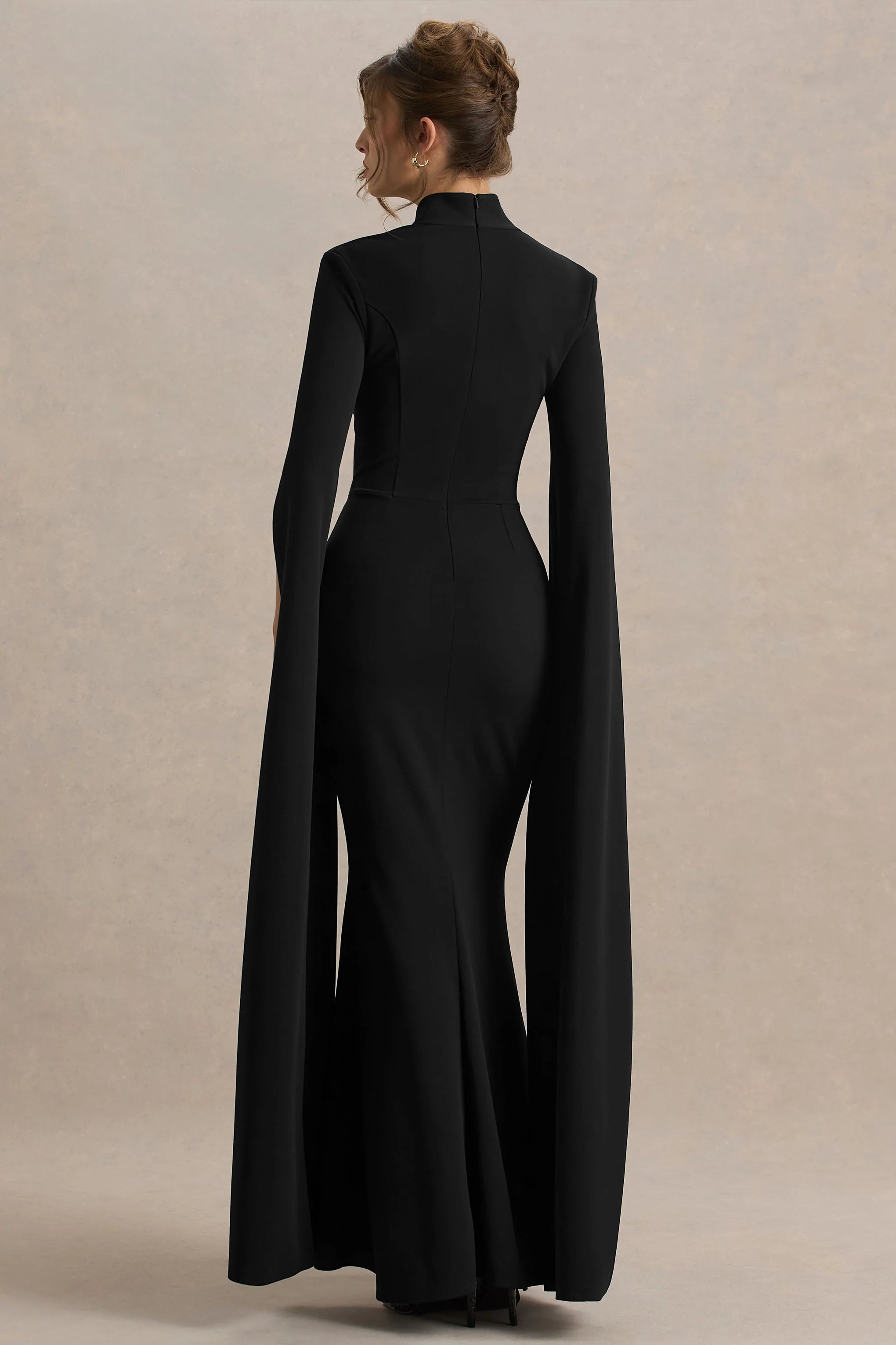 Elegance redefine, Esme is your answer to statement sophistication. Designed in our premium scuba crepe in a rich shade of black, this maxi dress effortlessly sculpts your curves. Featuring a feminine square neckline and dramatic cape sleeves that cascade over the shoulders, this silhouette is made to command attention. From red-carpet moments to black-tie weddings, in this gown you won't be forgotten.