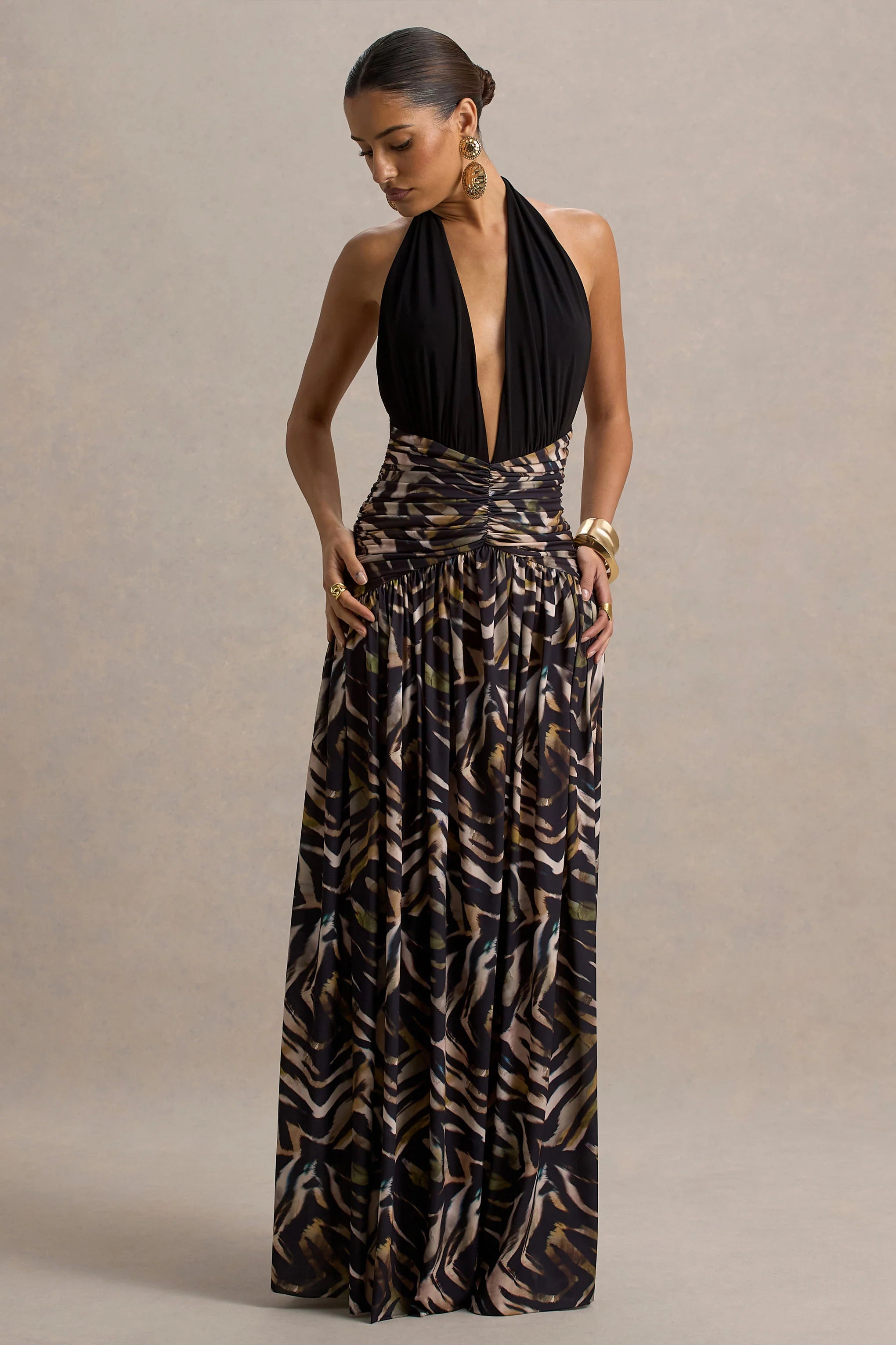 Introducing Ferreira, the perfect blend of sultry and chic. Designed in our premium stretch jersey in a striking zebra print, in this maxi you will be nothing less than an elegant vision. Finished with a daring plunge neckline with a functional neck tie, that not only ensures the perfect fit but adds a delicate back detail. This piece is a must have for sunset cocktails and beach side dinners this season.