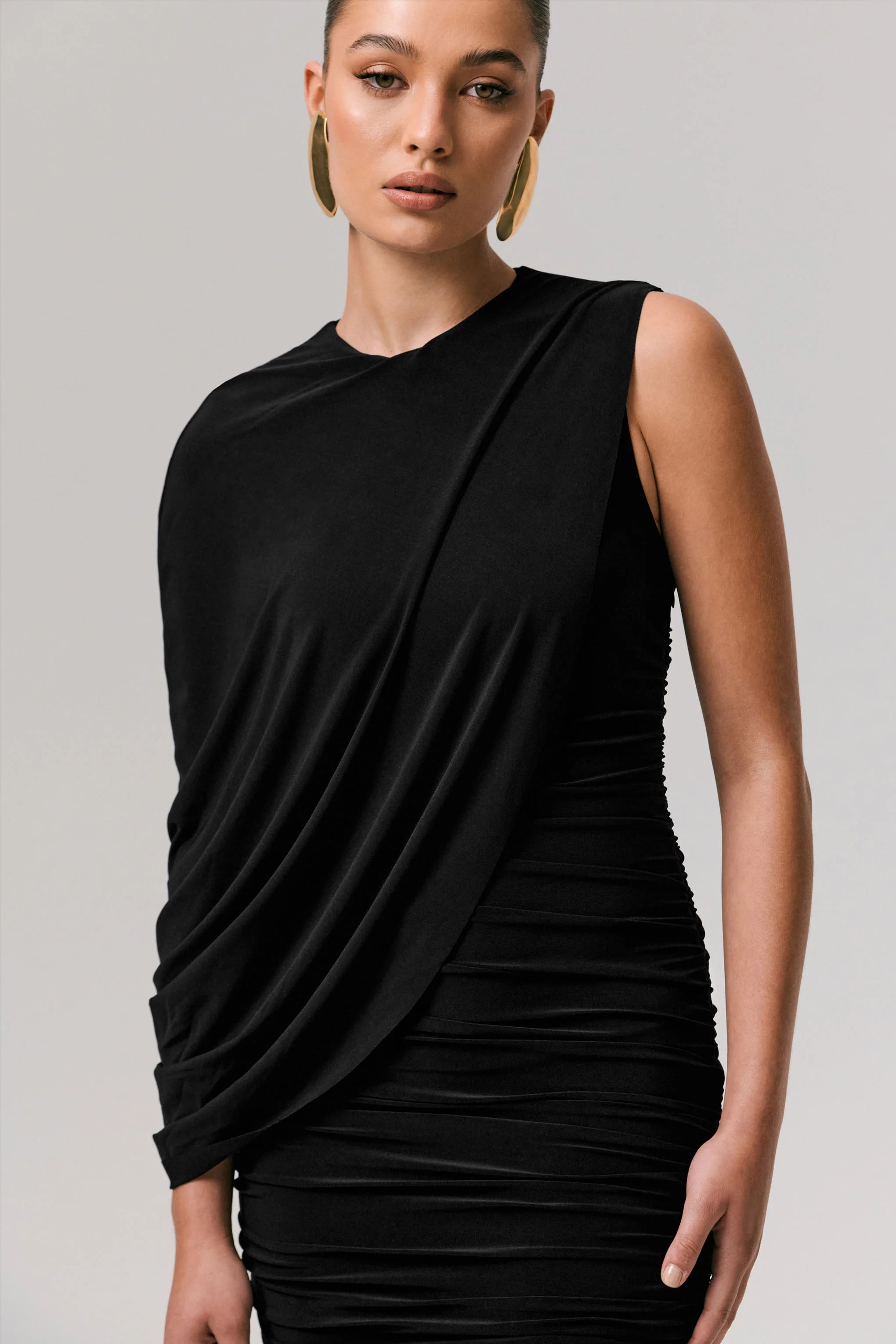 The mini which perfectly combines sophistication and class, Fortuna, has just landed. Cut in our premium black jersey, this piece features a striking one-sleeve detail alongside a ruched silhouette for a modern, contemporary look. Fortuna pairs perfectly with a dazzling clutch, making it perfect for both day and night.