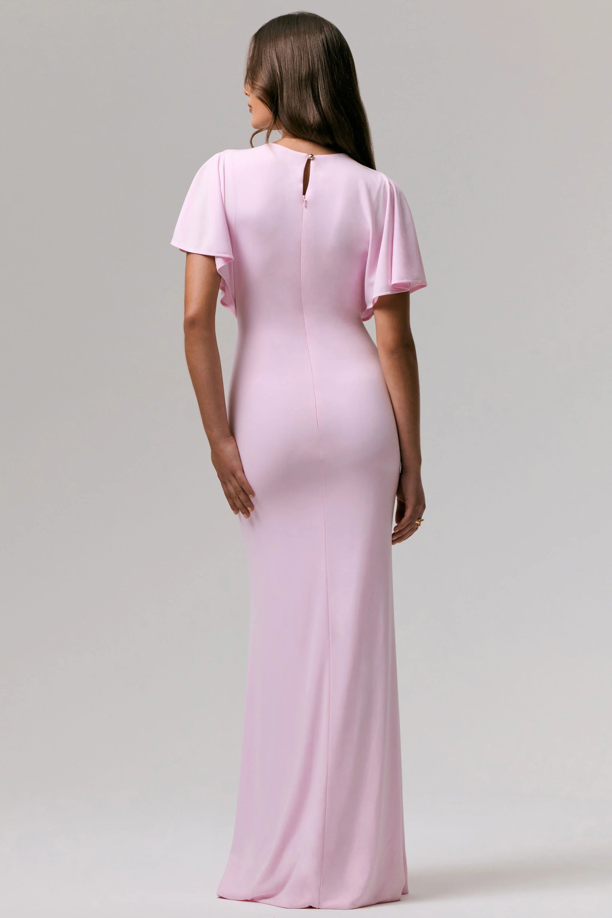 Make an effortlessly chic entrance at your next dressed up occasion in Grandeur. Designed in a dreamy pale pink hue of our premium solton, this maxi dress exudes elegance from every angle. Cut with a crew neckline for a refined look, that is complimented by cold shoulder detailing that brings a modern edge. Finished with ruched detailing for the ultimate figure flattering finish, in this gown you will be flattered from every angle. From wedding guest to elegant dinner affairs, in Grandeur you will steal the spotlight.