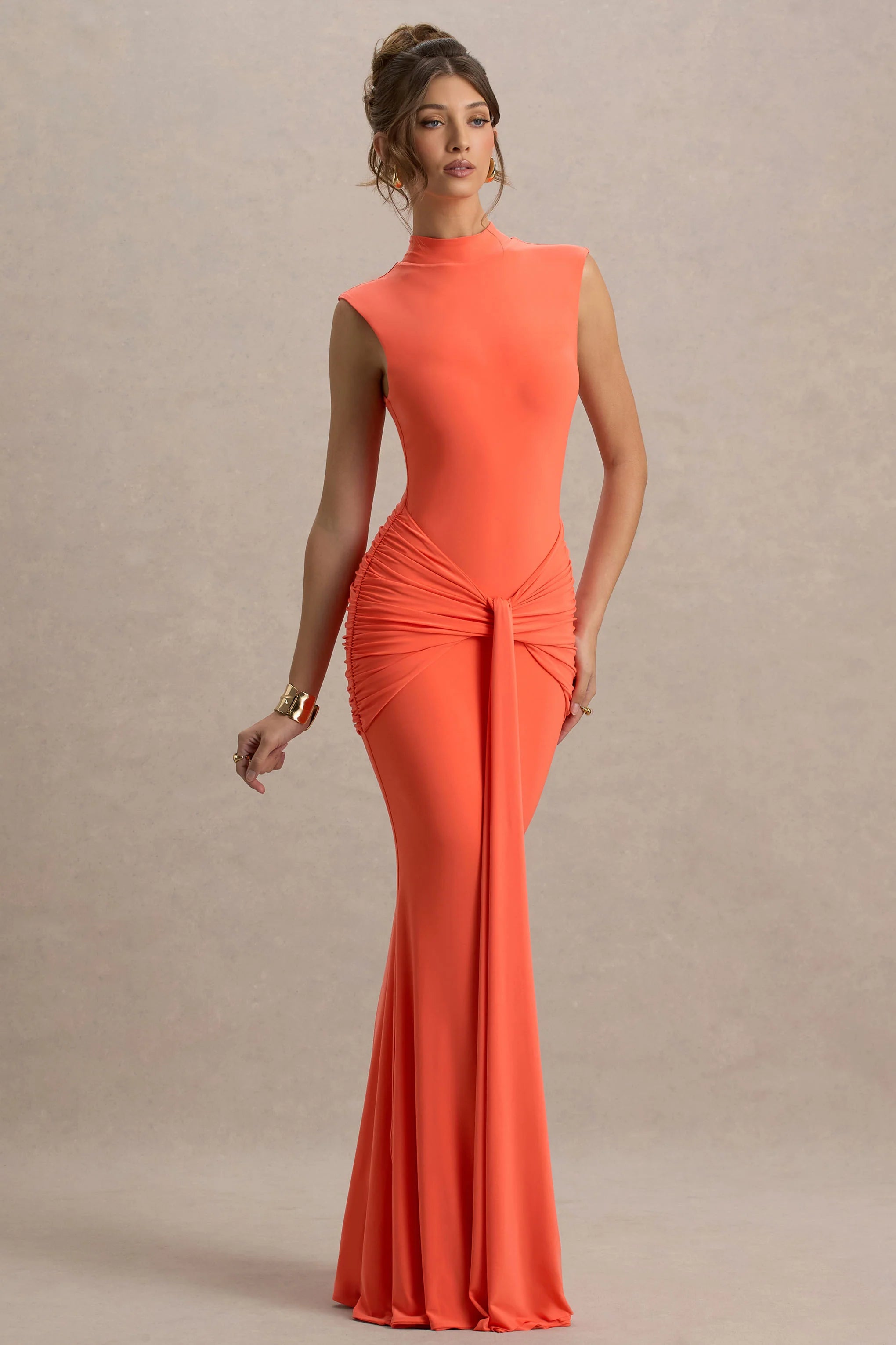 An elevated staple at its finest, the Graziana maxi. Curated in our premium stretch jersey, in a bold shade of coral, it is the perfect maxi for the season. Finished with a tie knot detail, to add movement and character, this piece will leave an impression of everybody. Style with an glam up do to finish the look for any upscale event.