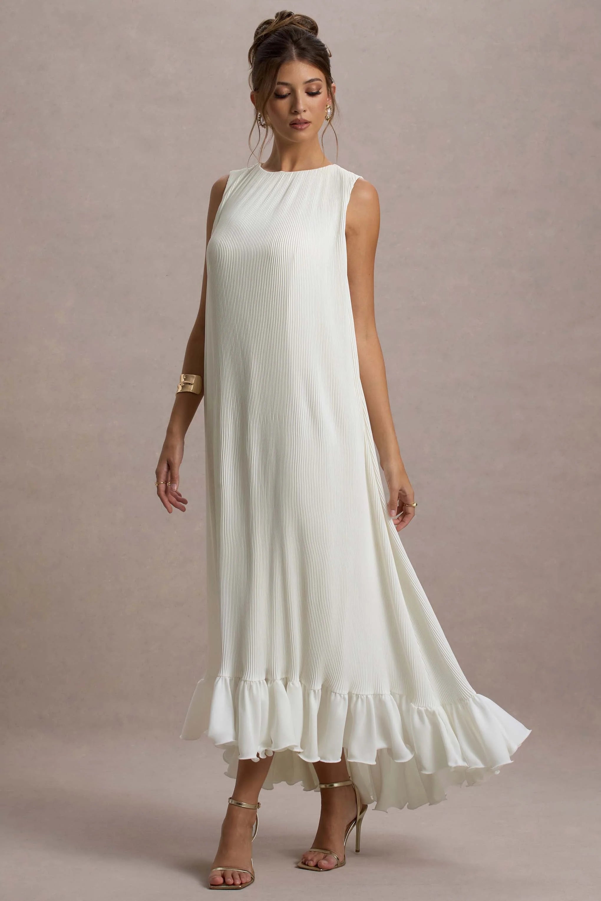 Billowy and ethereal, Hazelle was designed with your comfort at the forefront. Crafted in a rich cream shade of chiffon, this maxi dress features a classic racer neckline, keyhole cut-out and artful ruffled hemline.