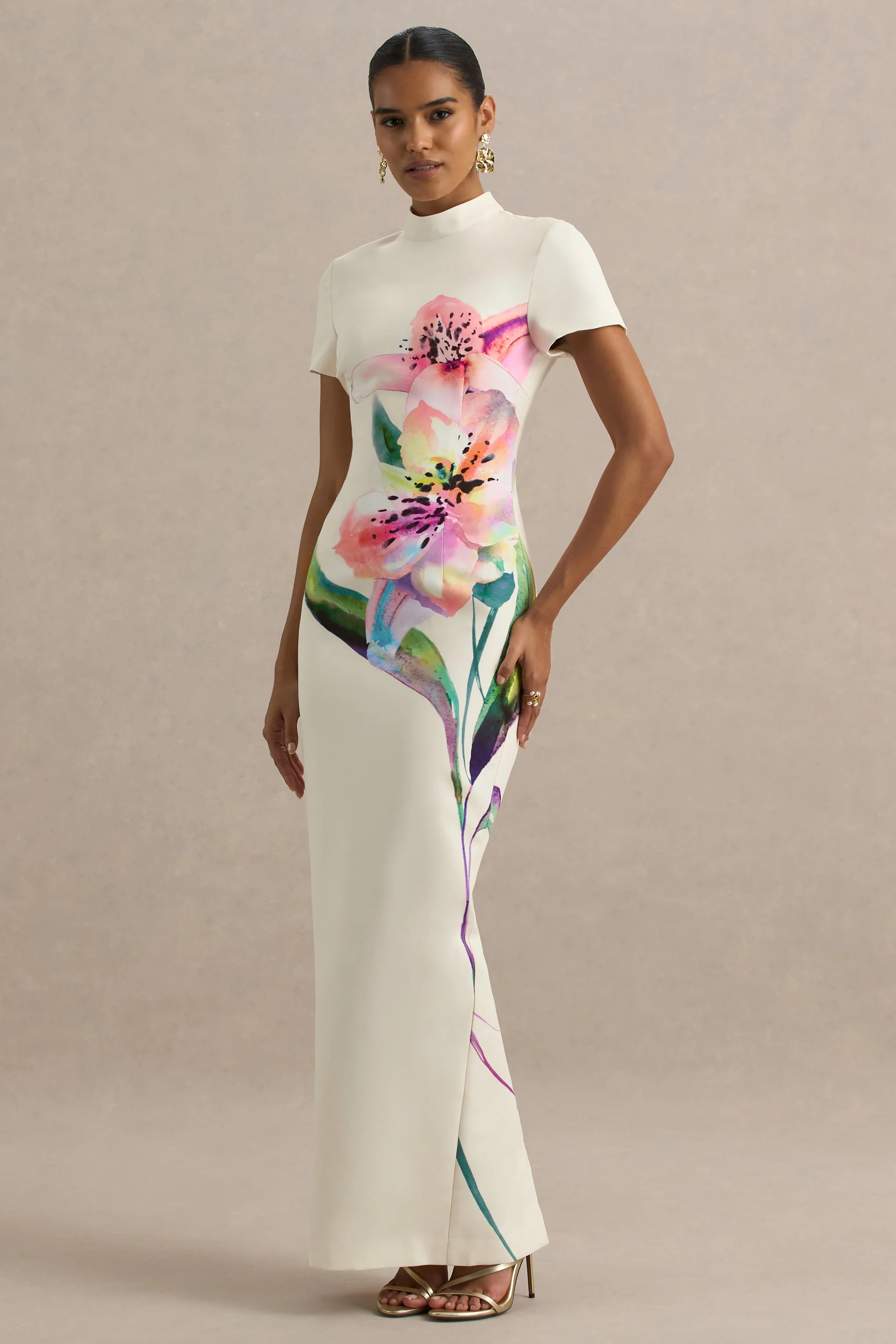 Timeless elegance with a fresh, feminine twist, Hessie is designed to make a subtle yet striking statement. Cut from our premium crepe in a delicate white lily print, this maxi dress combines soft florals with a clean, tailored silhouette that flatters from every angle. The high neckline and short sleeves offer a modest, refined silhouette that is balanced with a centre-back split for a touch of allure. Understated yet unforgettable, Hessie is perfect for garden parties or any moment that calls for quiet sophistication.