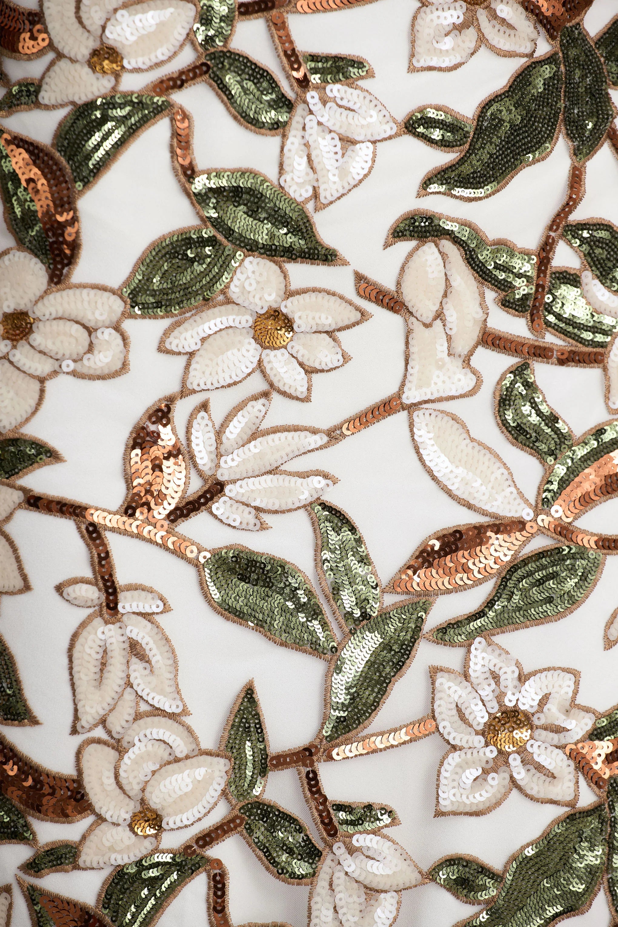 Premium embellishment and mesh in White and Green Floral (100% Polyamide)