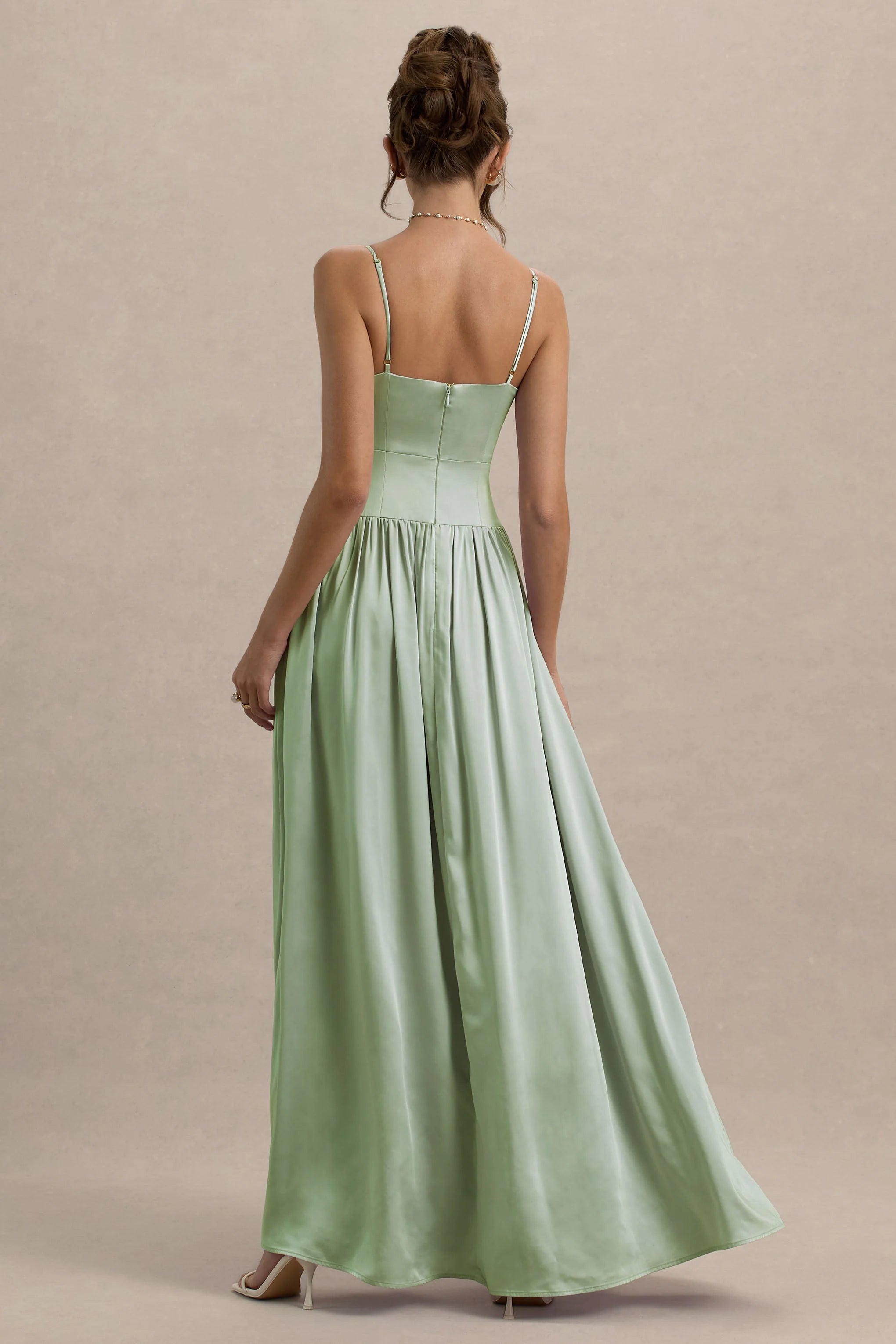 Introducing a piece that everybody needs in their wardrobe, Jonas, a seamless blend of timelessness and elegance. Cut in a soft light green hue of our premium satin, this pieces moves with you effortlessly and exudes allure. Featuring a plunge neckline that not only highlights you decolletage, but adds modernity to this classic silhouette. Finished with adjustable straps ensuring a perfect fit for everyone. Style with delicate gold jewelry for a look of understated glamour.