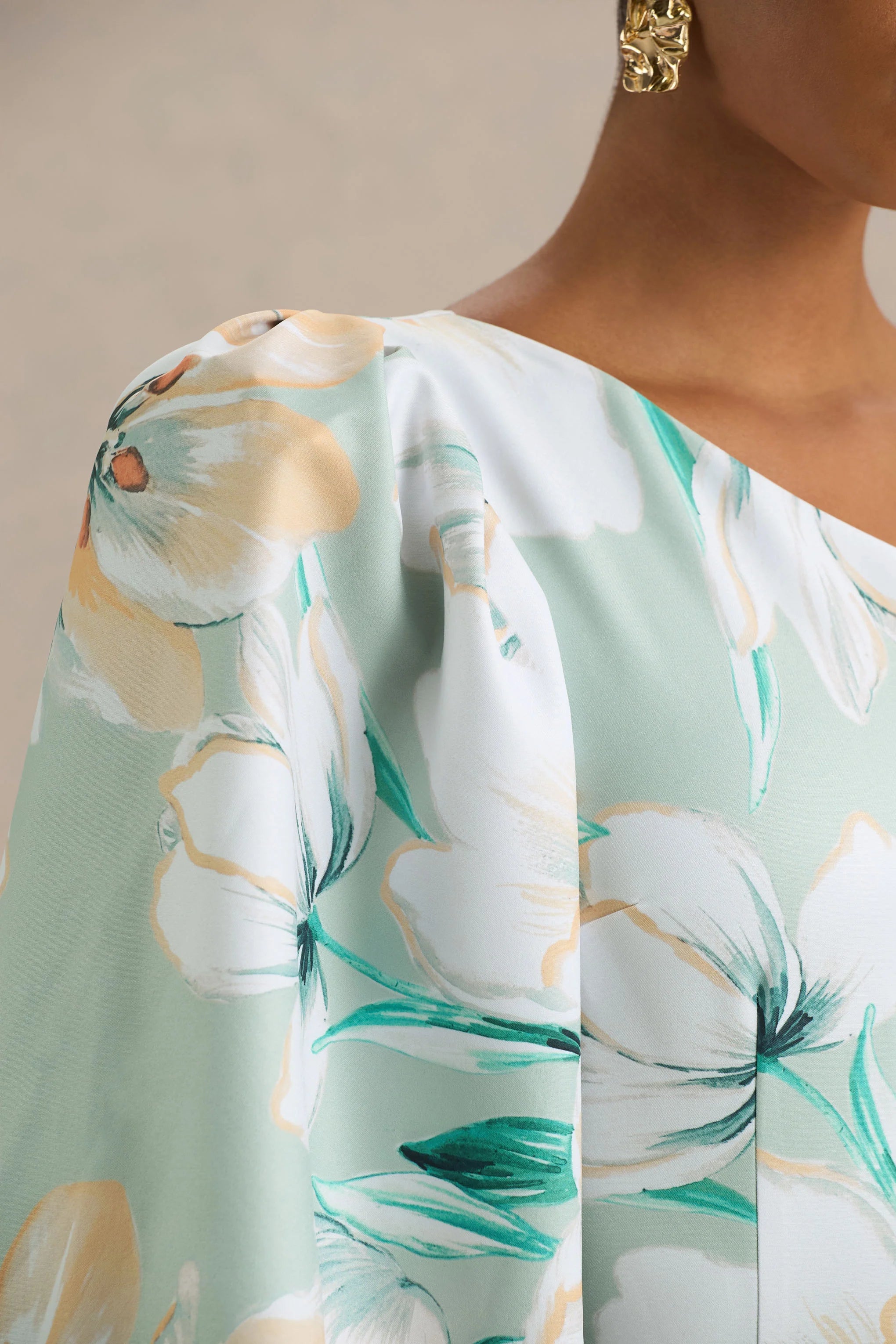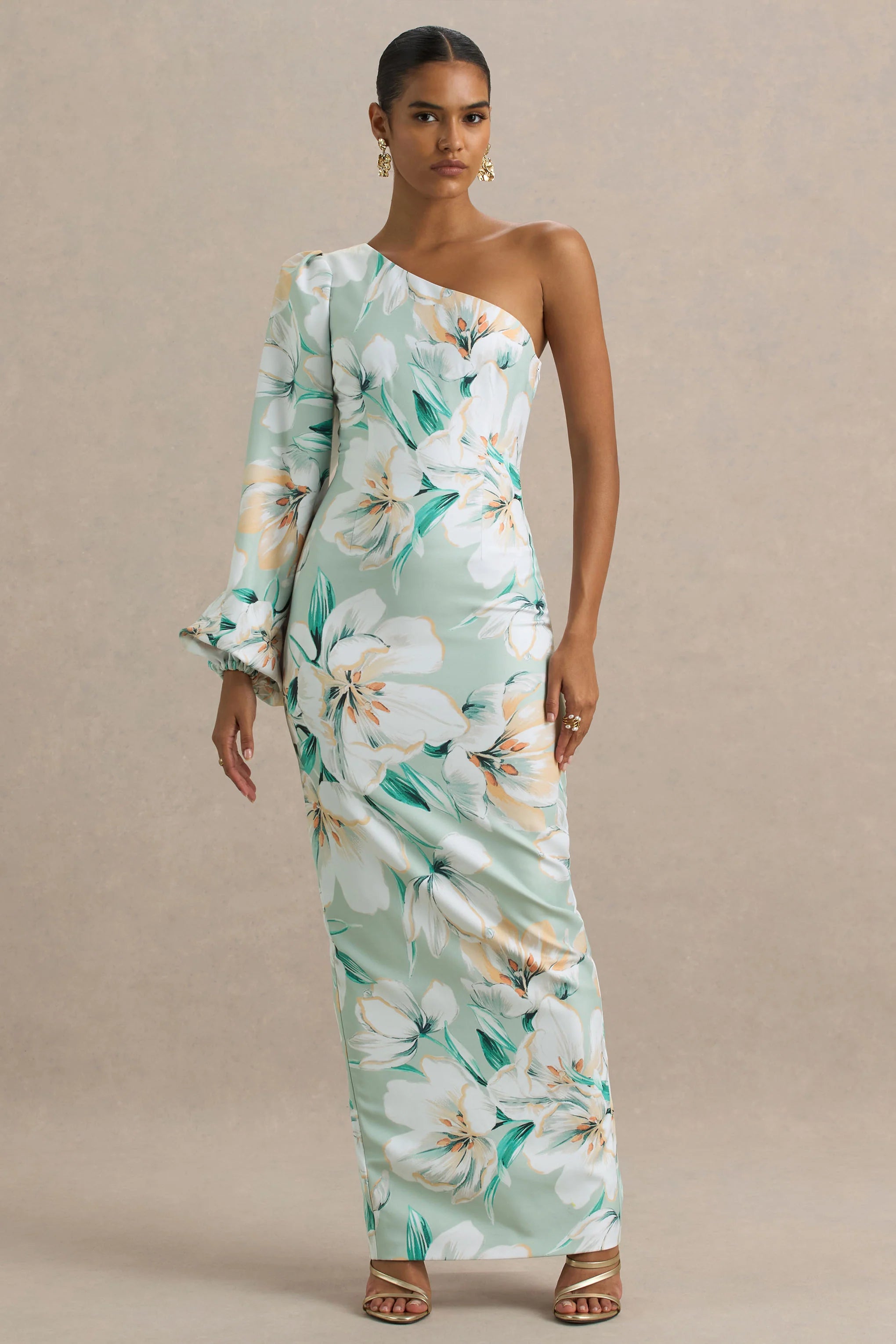 Make a striking statement this season in Kellis. This romantic maxi is cut in a soft green floral print of our premium stretch crepe, ensuring a sculpting and figure enhancing fit. Complete with an asymmetric neckline, adding a touch of modernity to this classic silhouette, and a romantic puff sleeve. From elegant dinner dates to black tie occasions, in Kellis you will command attention.