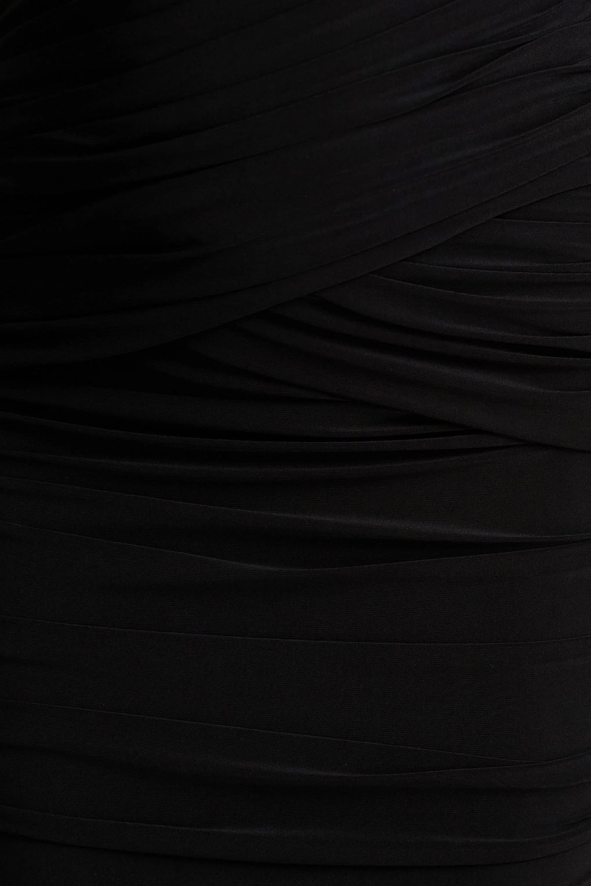 Make way for Kendall, the definition of effortless sophistication and high-impact glamour. Crafted from our premium stretch jersey in a classic black, this sleek maxi dress is designed to contour and captivate. Featuring a chic V-neckline with a twist detail that draws the eye, Kendall is complete with a sultry front cut-out for a modern egde. All-over ruching enhances your curves, while the centre-back split adds just the right amount of drama. A bold yet refined look made for unforgettable entrances.