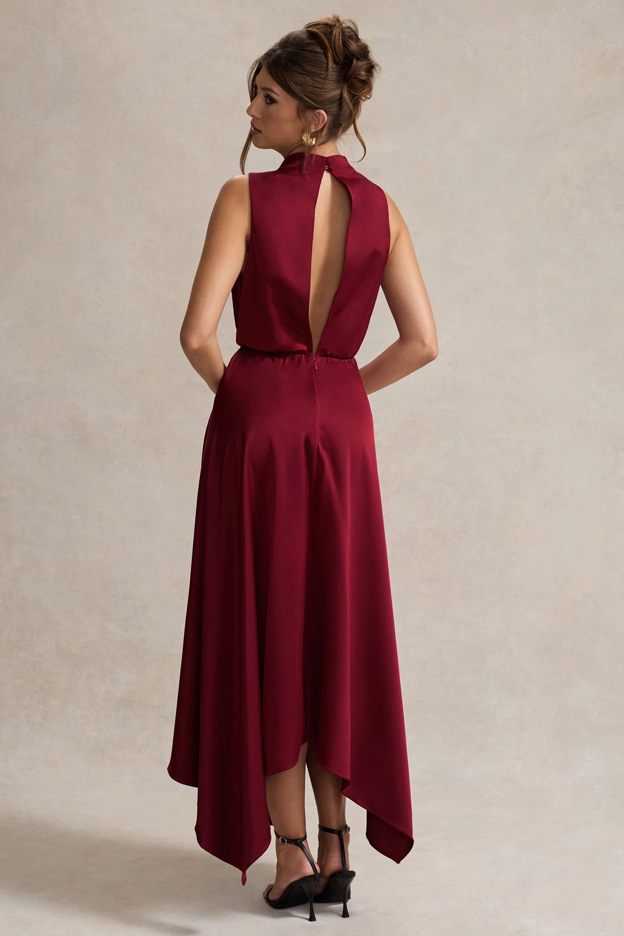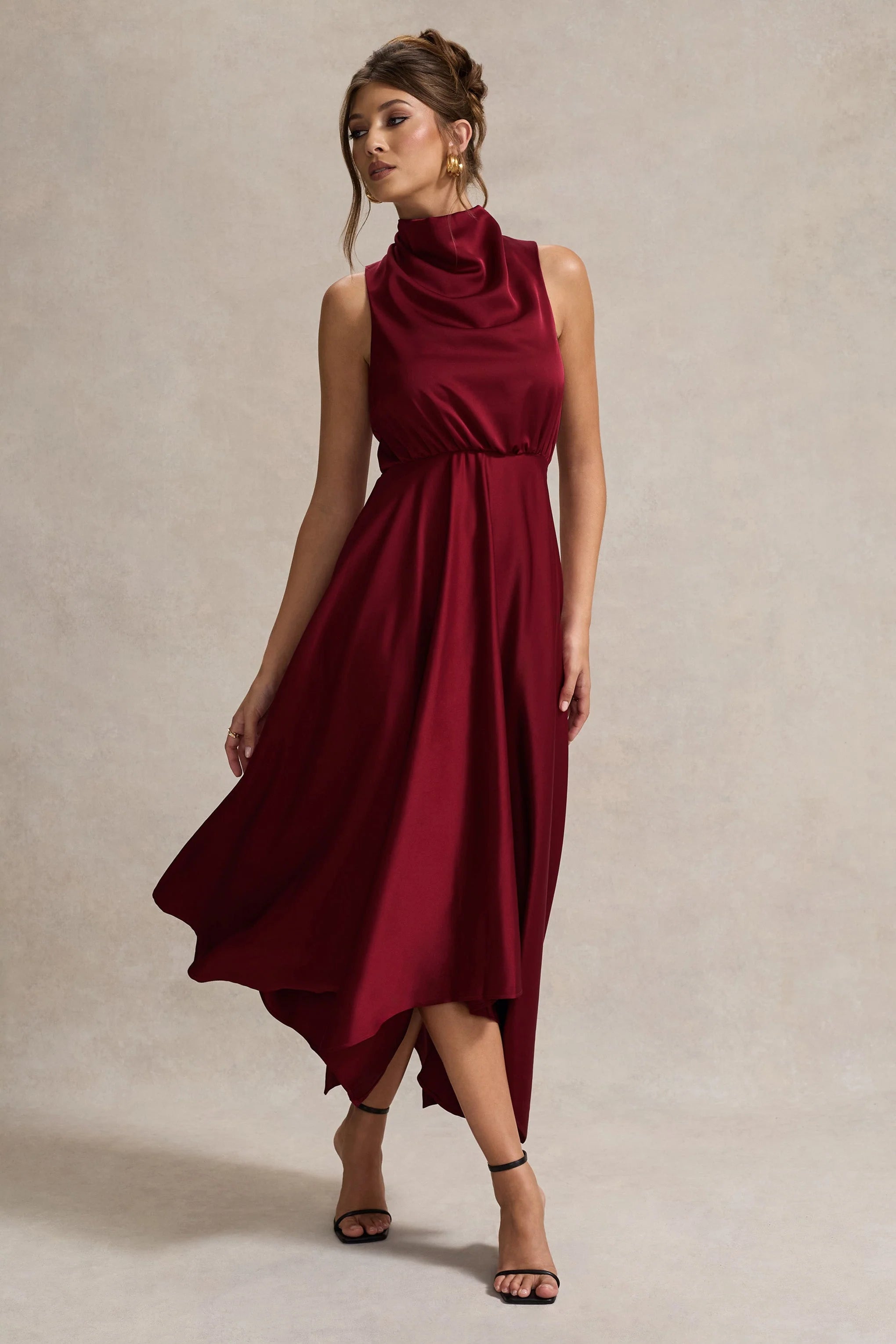 A dress that's both timeless and sophisticated, Kerri was made to see you through any formal occasion. Cut in a rich berry hue of our premium satin, Kerri is defined by a flattering cowl neck, cinched waist and a fluid draped hem. Whether it's a romantic dinner date or wedding reception, team yours with a tousled bun and some gold accents for a stand out look.