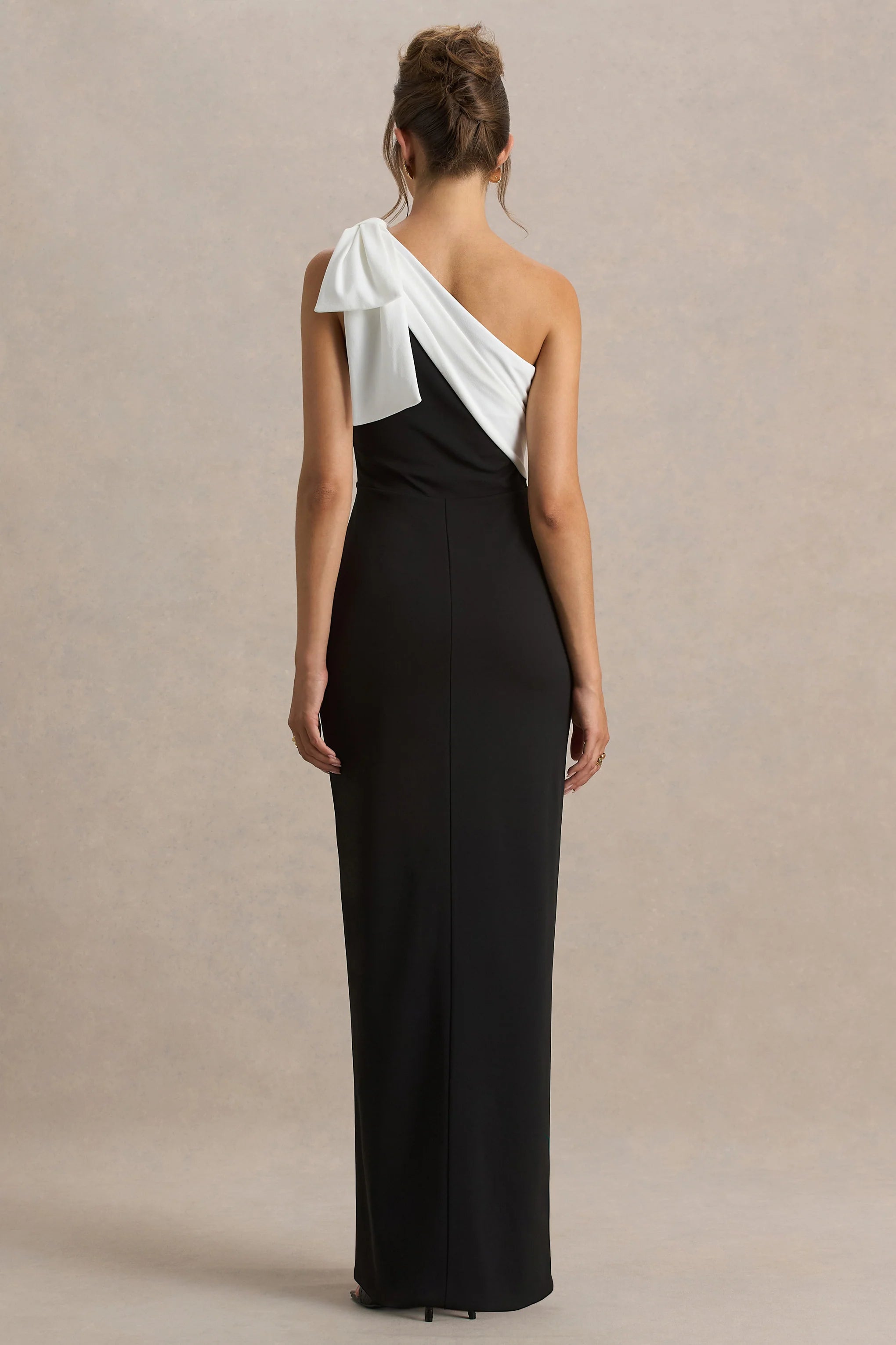 Kiri is the epitome of feminine energy, bound to turn heads in every room. Curated in our premium black scuba crepe, this piece exhibits a flattering white asymmetric neckline and a sultry split hemline - what's not to love?