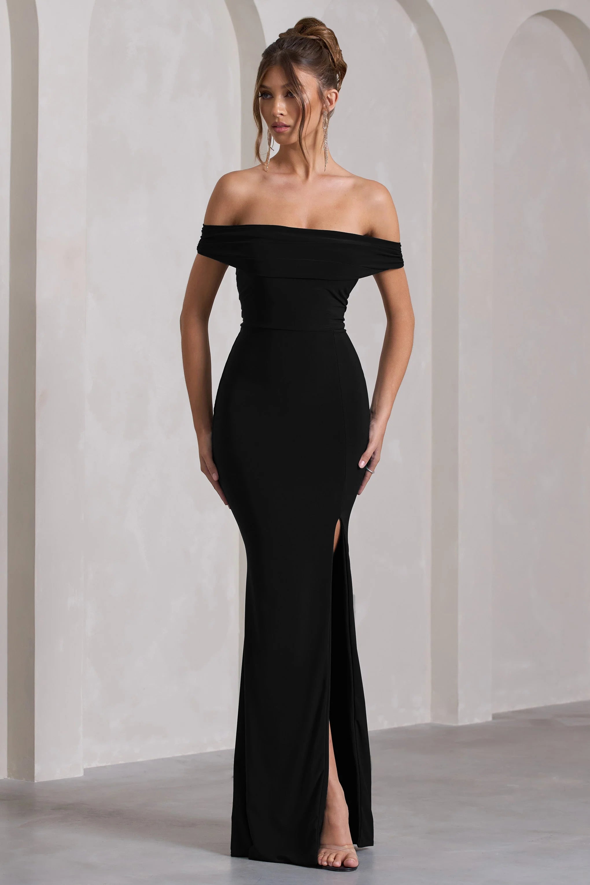 Both timeless and sophisticated, this black maxi dress is a must-have for any formal wardrobe. Featuring an elegant bardot neckline and striking high-leg split, this floor-sweeper is perfect for any black tie event you may have coming up. Try styling Law Of Attraction with a sleek bun to show off its stunning design.