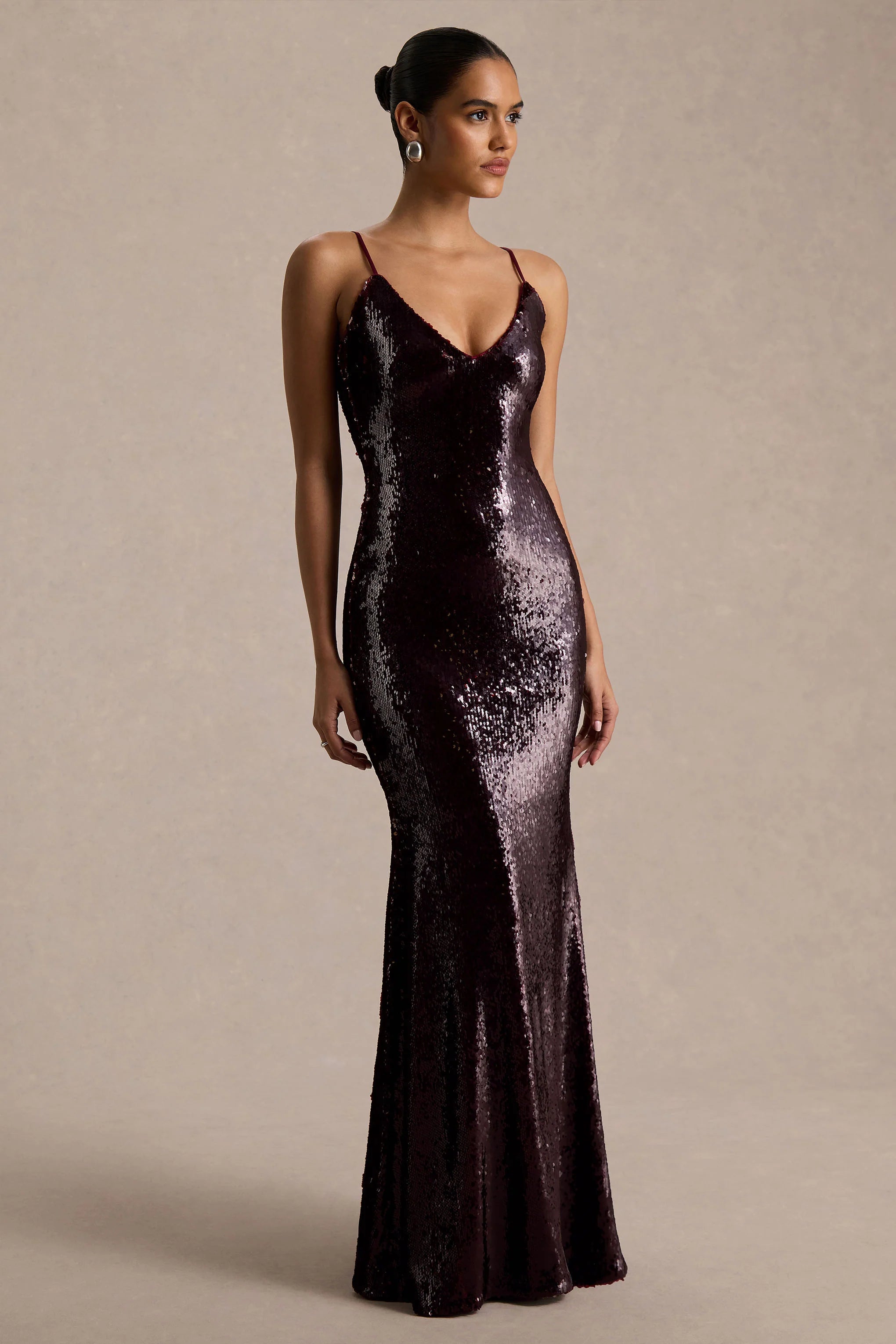 Shine bright and own the night in Lina. Crafted from our premium burgundy sequins, this maxi-length stunner is all about drama and elegance. The daring plunge neckline and adjustable cami straps create a flawless fit, while the full-length silhouette commands attention with every step. Perfect for glamorous evenings and unforgettable nights, Lina is where sophistication meets show-stopping sparkle.