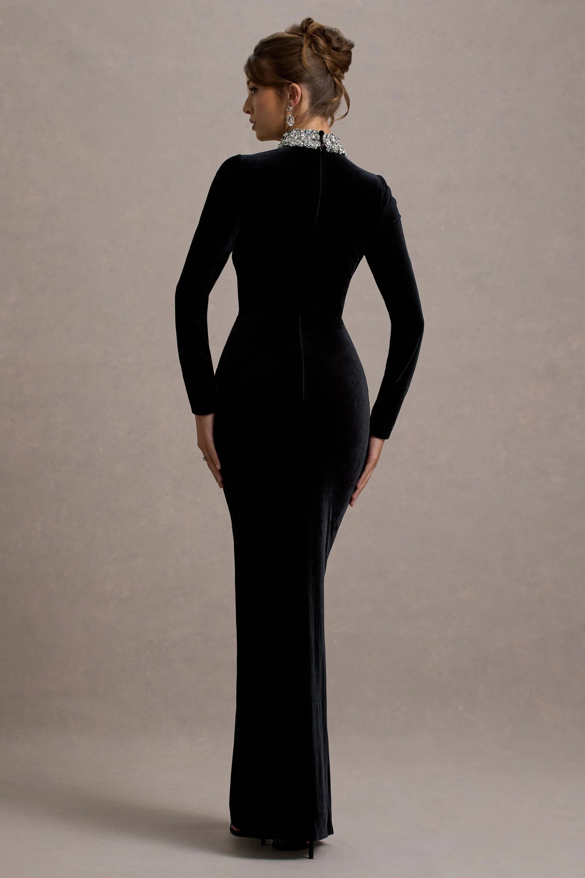 Love Lost is your go-to for making a striking entrance at your next special occasion. Crafted from our luxurious black velvet, this maxi dress is designed to captivate with its intricate twist detail at the waist, beautifully enhancing your silhouette. Embellished with sparkling accents, Love Lost radiates opulence, while the sleek, floor-length design adds a touch of drama. Pair it with minimal jewellery and a bold heel to ensure this statement piece remains the focal point of your look.