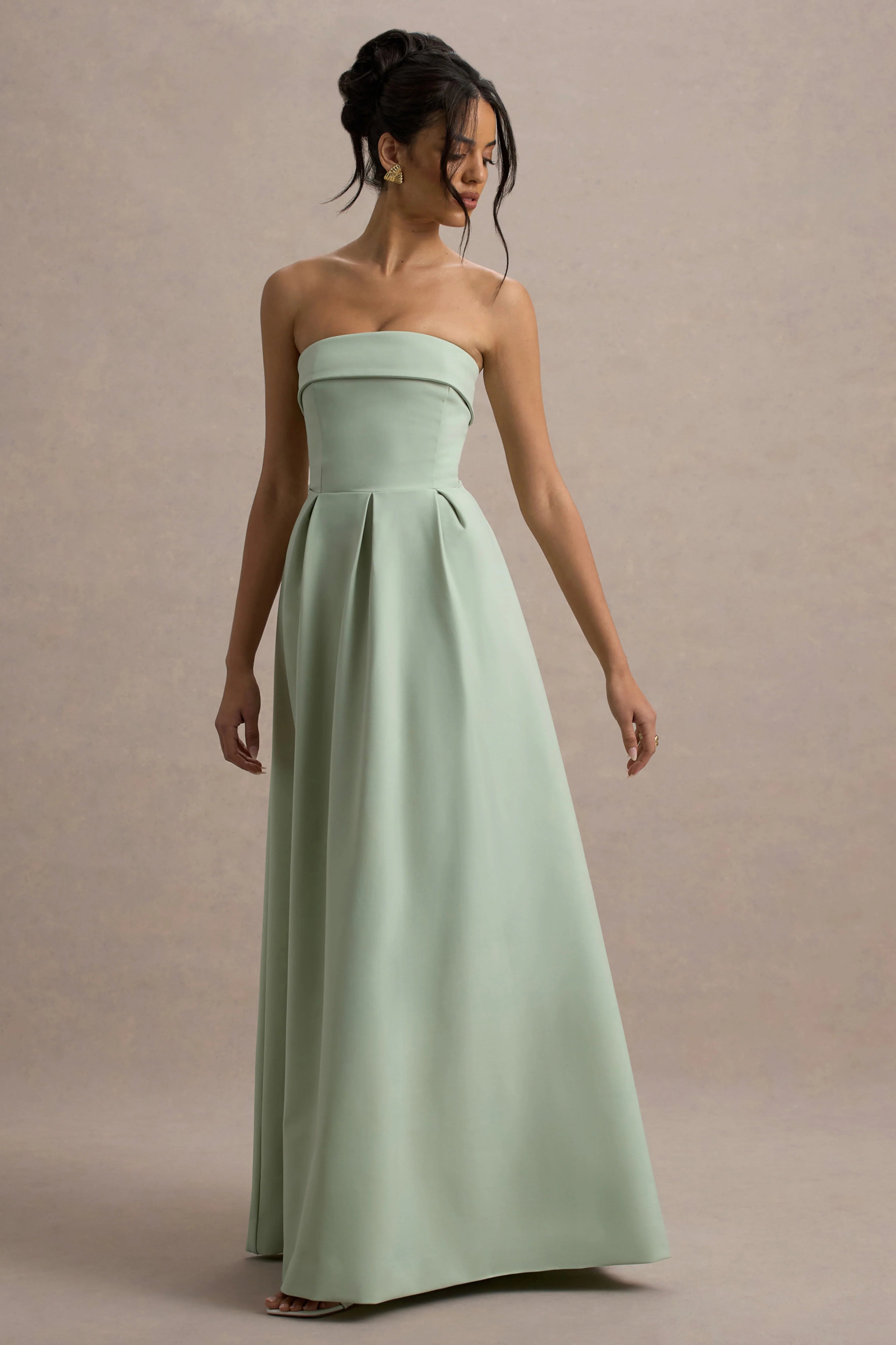 You loved our Annalise so much, it was only right to bring her back as a maxi - say hello to Maddalena. Cut in our premium light green stretch crepe, this waist cinching classic features a flattering skater silhouette with a flowing pleated skirt. Pair yours with a little statement clutch for a glamourous ensemble.