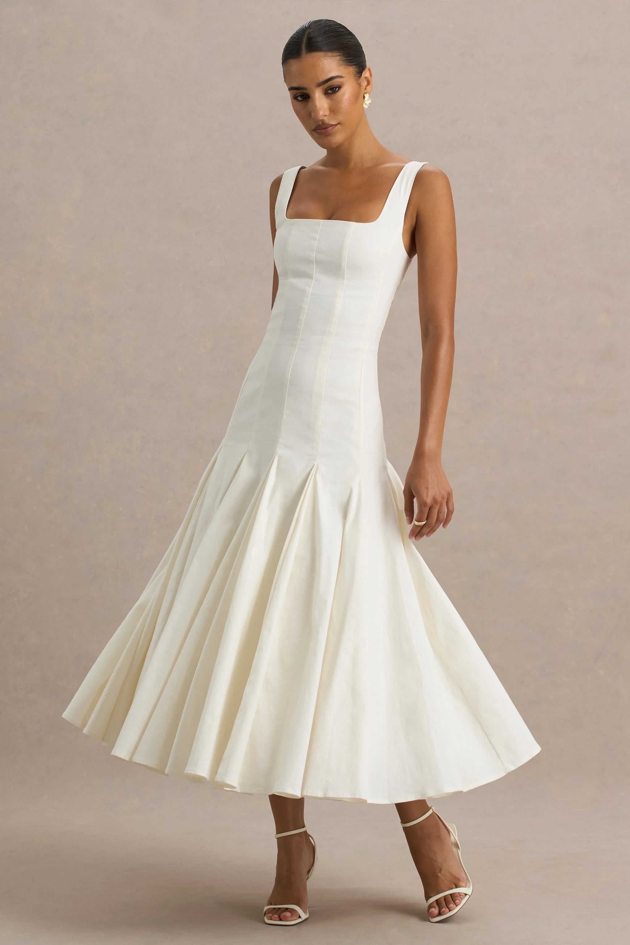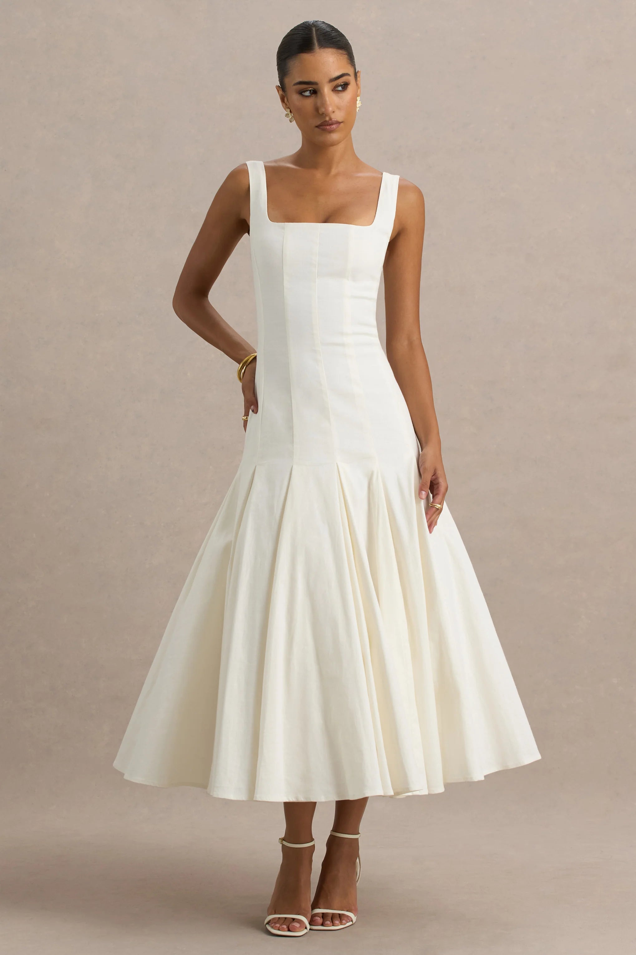 Timelessly elegant and effortlessly chic, our Magnolia dress will be your go-to for all occasions this season. Crafted from our premium casual woven in a classic white hue, this midi dress exudes feminine aura into every room you step in. The scoop neckline beautifully structures the decolletage, whilst the bodice seamlessly sculpts your figure, flattering you from all angles. The drop waist and ruffled skirt create a gorgeous silhouette, that adds a touch of modernity to this classic piece. From ladies lunches to glamorous date nights, in Magnolia all eyes will be on you.