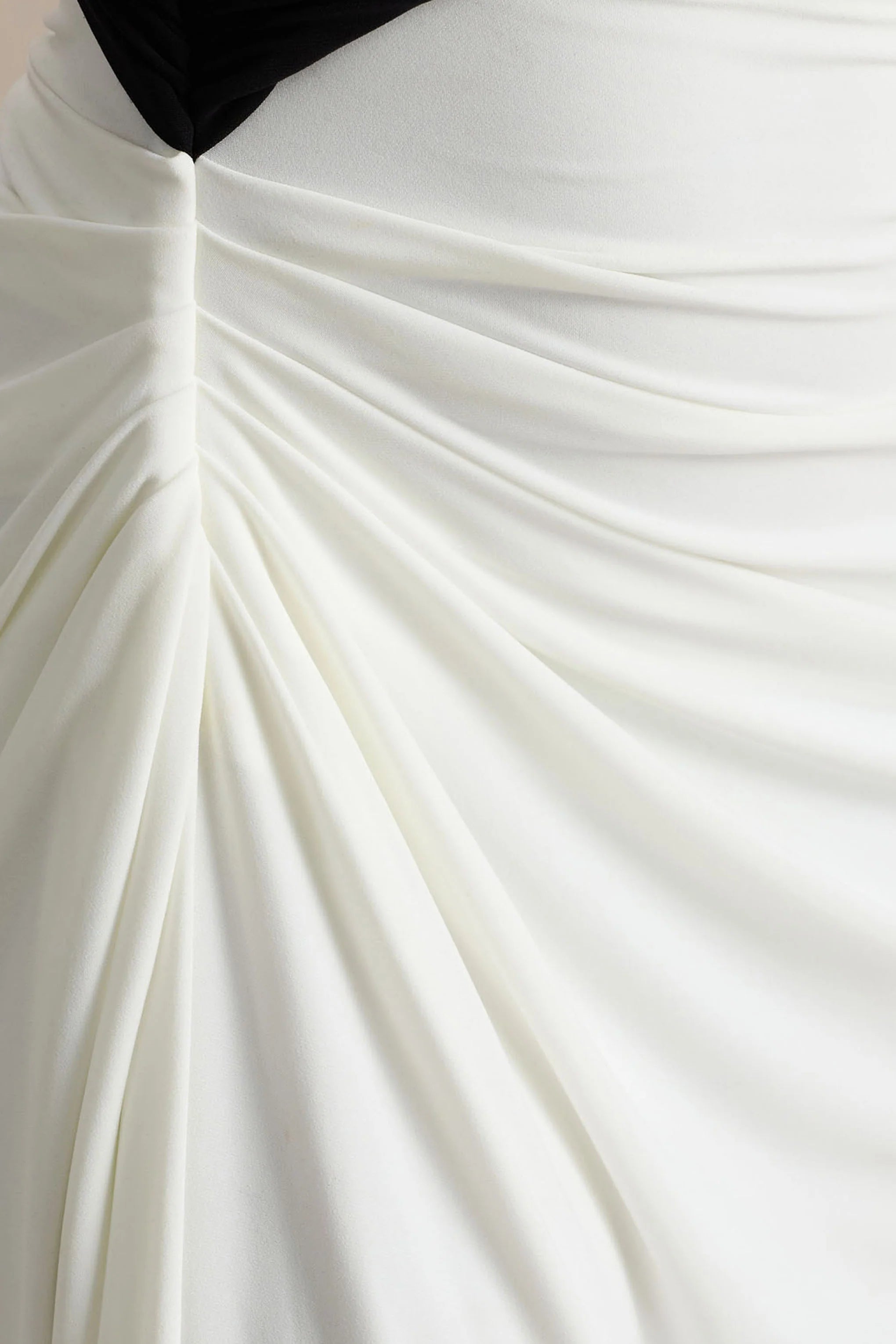Own the spotlight in Malika, a statement maxi made for after-dark drama. Crafted from our premium stretch jersey in striking black and white hues, this silhouette contours the body beautifully, enhancing your shape with every curve. Designed with a bold asymmetric neckline and daring cut-out, Malika delivers high-impact style with gathered detailing that flatters from every angle. A true power piece for unforgettable nights.