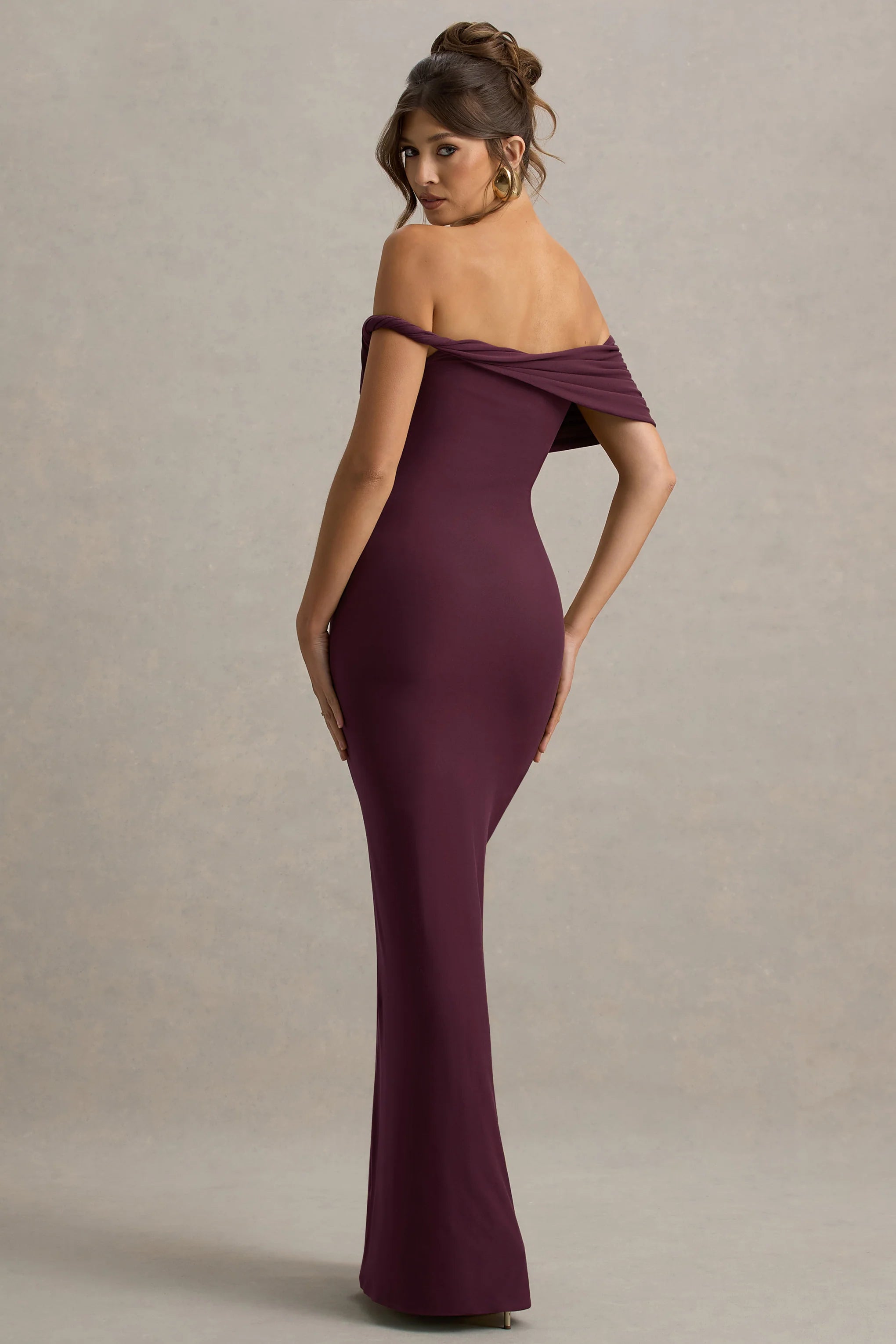 From city to city, Melika is a favourite all over the world with its timeless silhouette and fit. Crafted from our burgundy premium stretch jersey, the maxi dress provides a flattering yet comfortable fit ensuring your shape is perfectly contoured all day and night long. Style Melika with gold jewellery and classic waves for a look of Hollywood glamour.