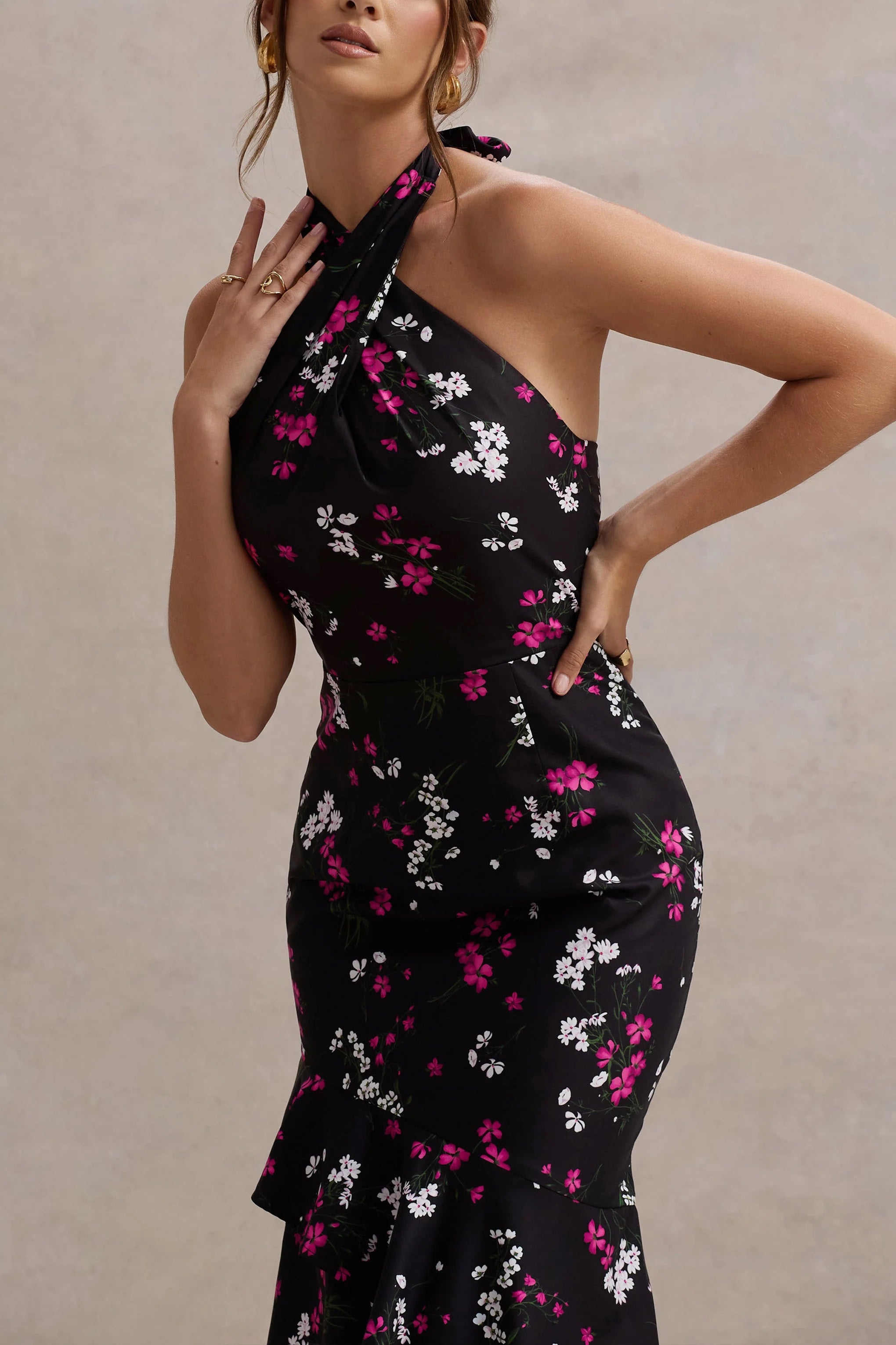 Your perfect destination wedding maxi dress Melodia has just dropped. Decorated in a premium lightweight woven black ditsy floral print, this gorgeous piece exudes ultimate femininity with its appealing halter neckline and ruffled hemline. Style yours with a bouncy up-do and our graceful Sweet Step heeled sandals.