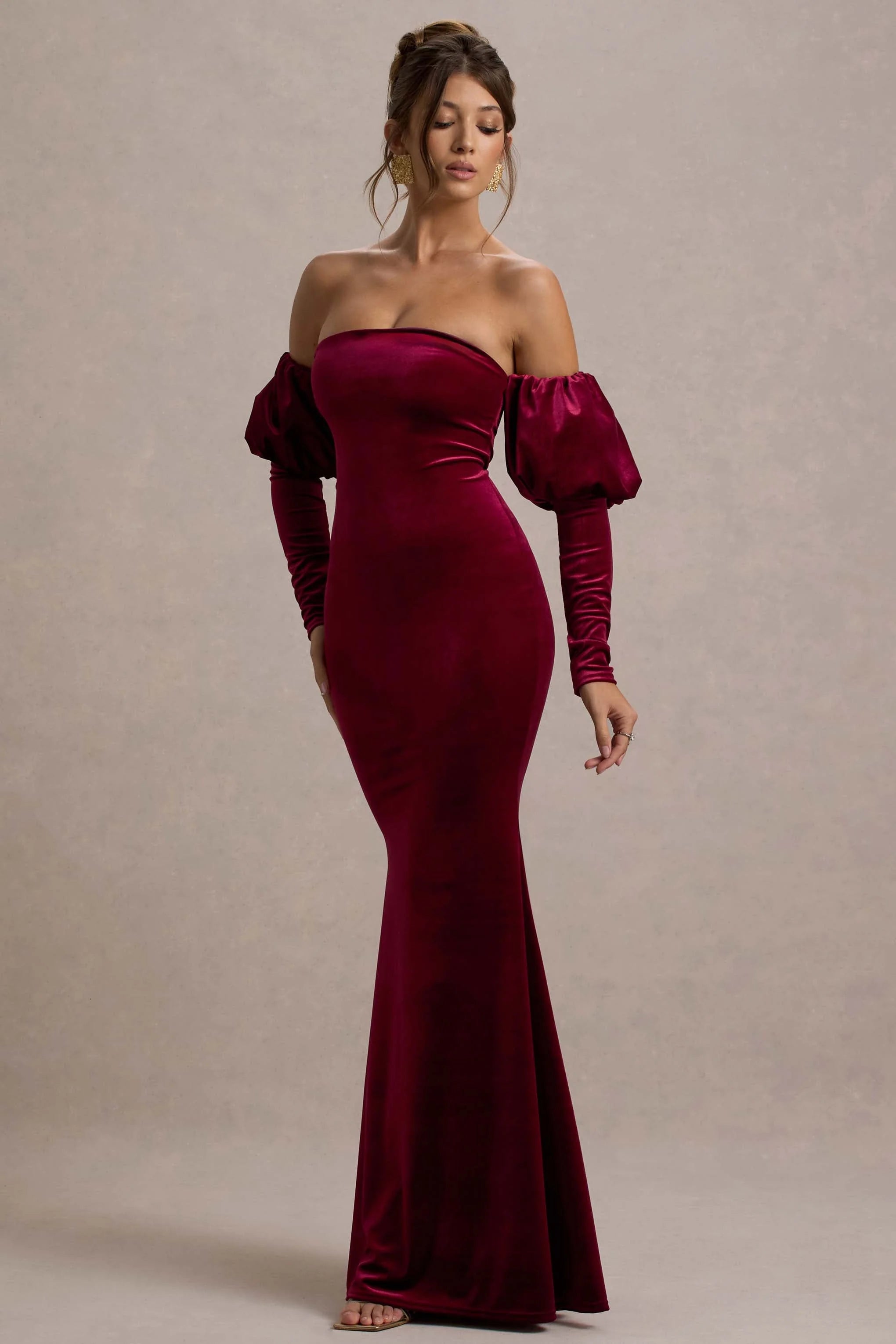 Neoma is an enchanting option for your next special occasion, designed to command attention with its luxurious berry velvet and statement silhouette. Featuring a chic bardot neckline, this maxi dress is elevated by voluminous puff sleeves and a fitted bodice that beautifully enhances your curves. The rich velvet fabric adds depth and drama, making Neoma perfect for evening affairs.