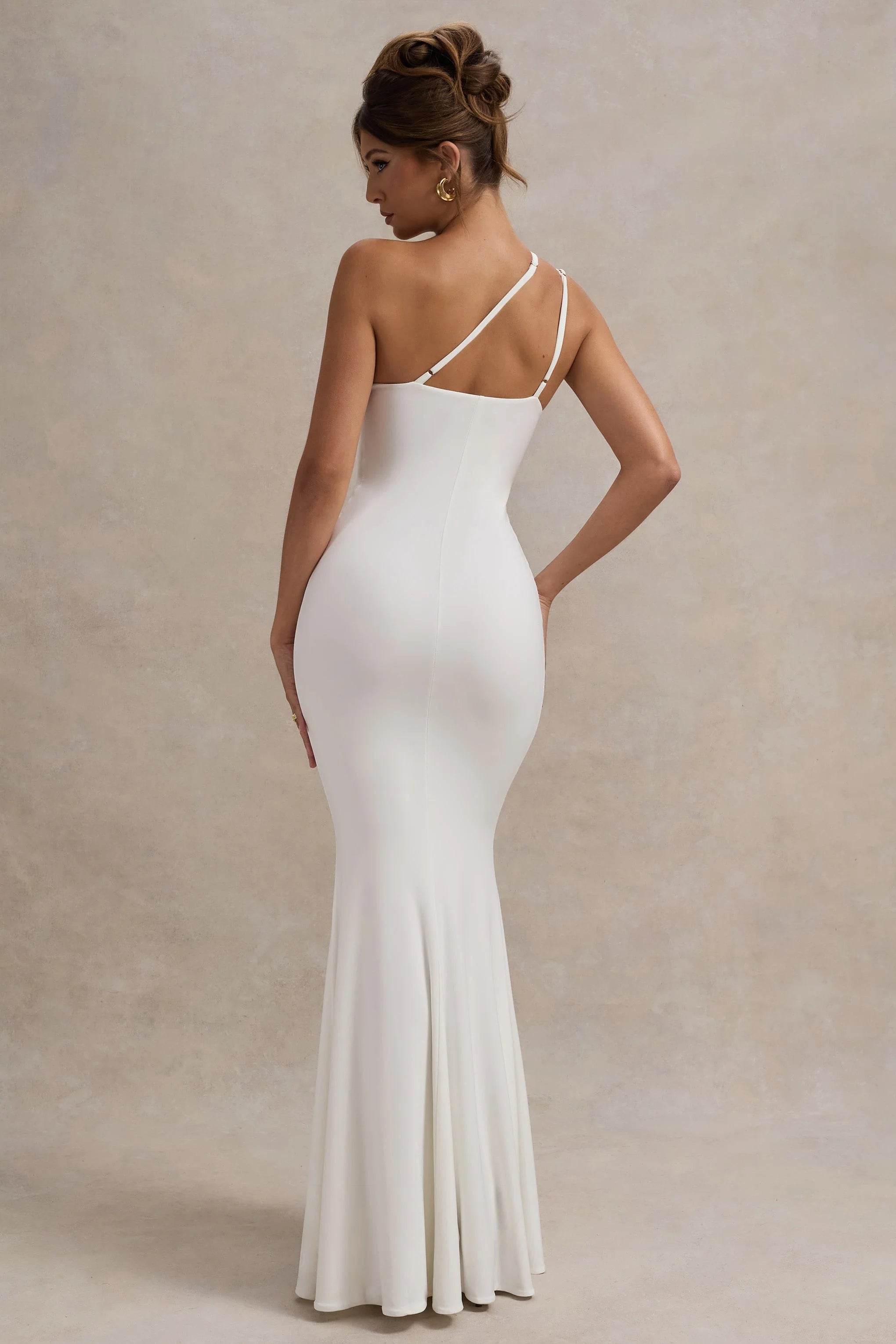 Captivate from all angles in Neroli, our sultry white maxi dress. Arriving in our premium stretch jersey, this asymmetric piece boasts adjustable cami straps, a sculptural twisted front and contemporary centre split. Get event ready by teaming yours with some strappy stilettos like Pluto.