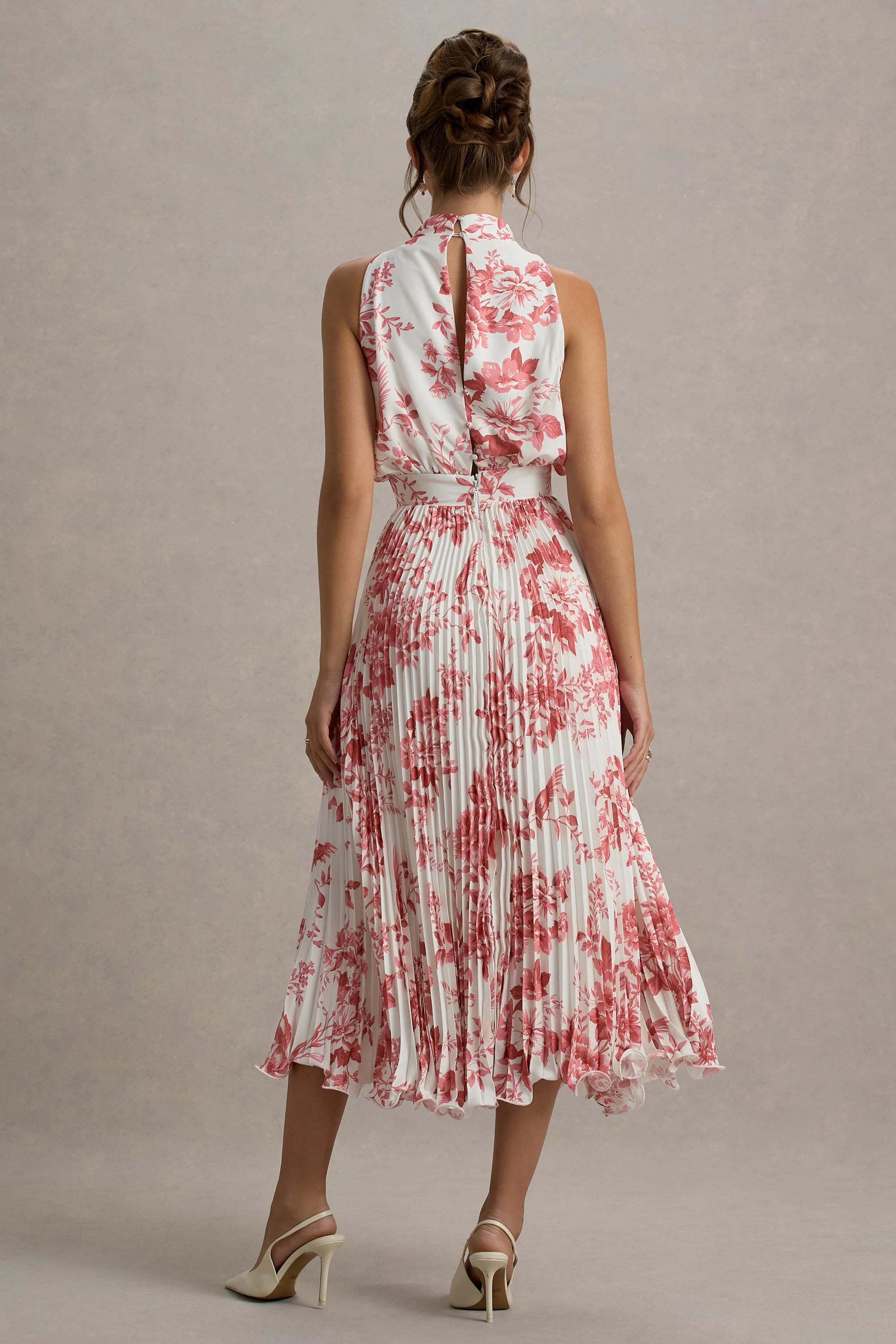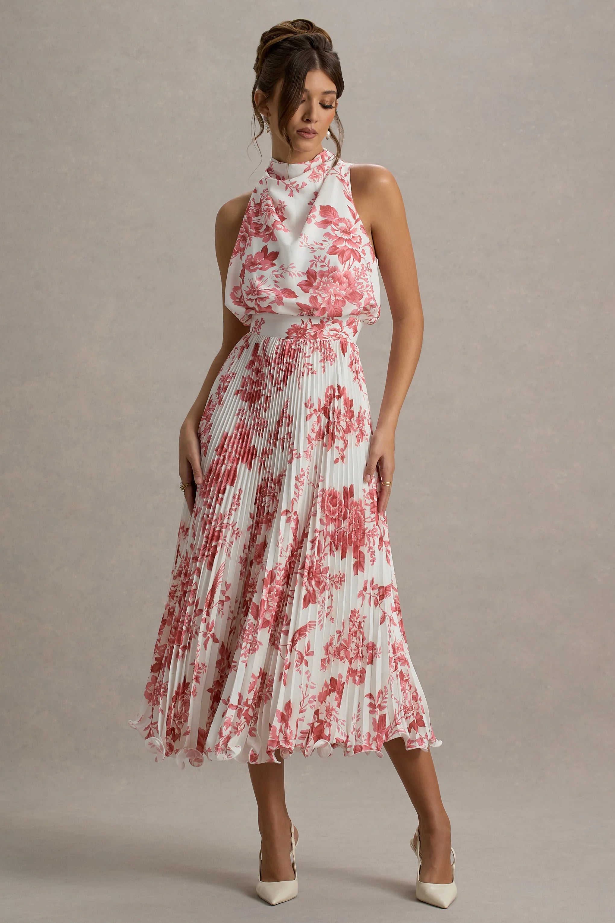Simple yet graceful, Nila was made to see you through any occasion. Designed in a pink porcelain print of our premium chiffon, this elegant midi dress boasts a demure high neckline, subtle cowl detailing and a flattering cinched waist. Compliment Nila's plisse skirt with some eye-catching stilettos like Bowing.