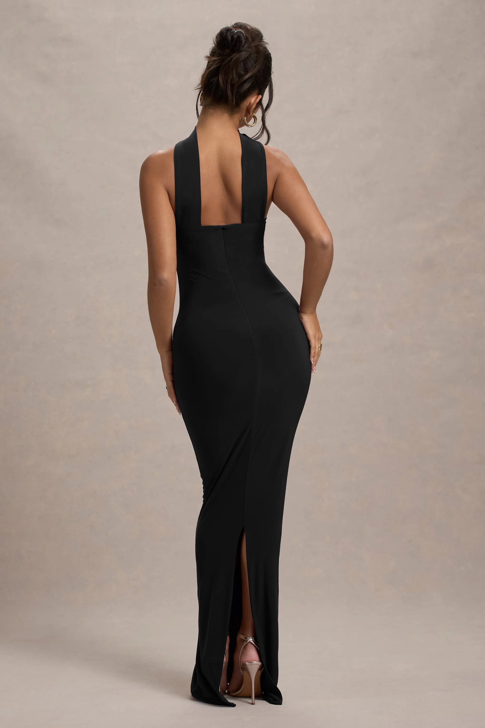Dinner dates just got a lot more luxurious with the addition of Nobu, our black maxi dress. Expertly crafted in our dual-layered jersey, this bodycon clings to your curves in a floor-length silhouette. Finished with a contemporary halter collar, pair yours with a sleek bun to show off all Nobu has to offer.