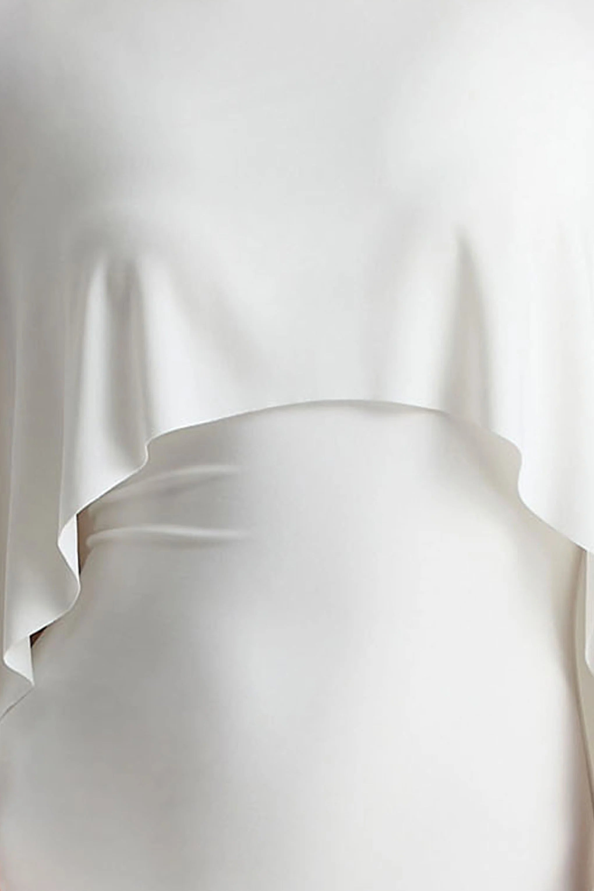 Captivate from all angles in Padma, our opulent white maxi dress. Crafted in a premium stretch jersey, Padma sculpts your frame with a flattering bodycon fit. Defined by floor length cape sleeves that command attention, try styling yours with a sleek bun and our Sanya earrings for the ultimate occasion look.