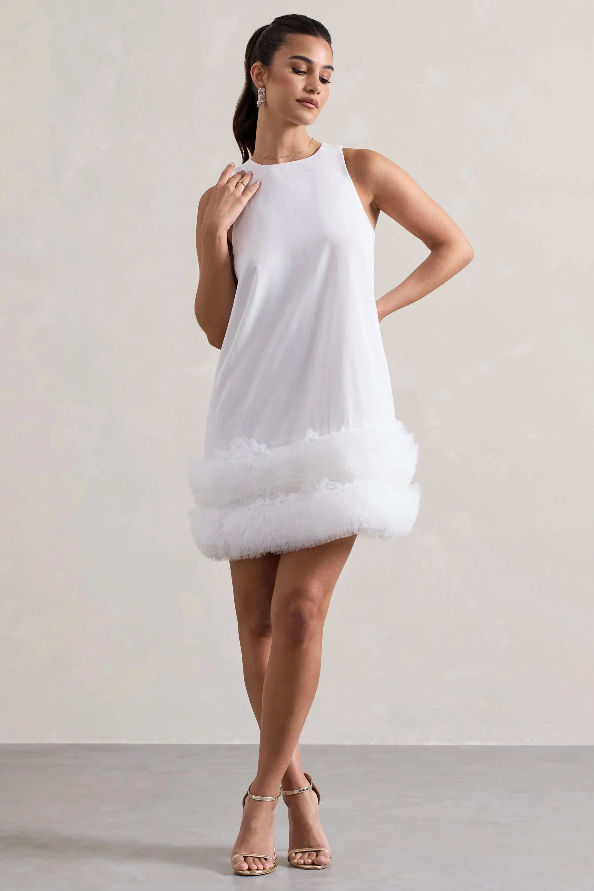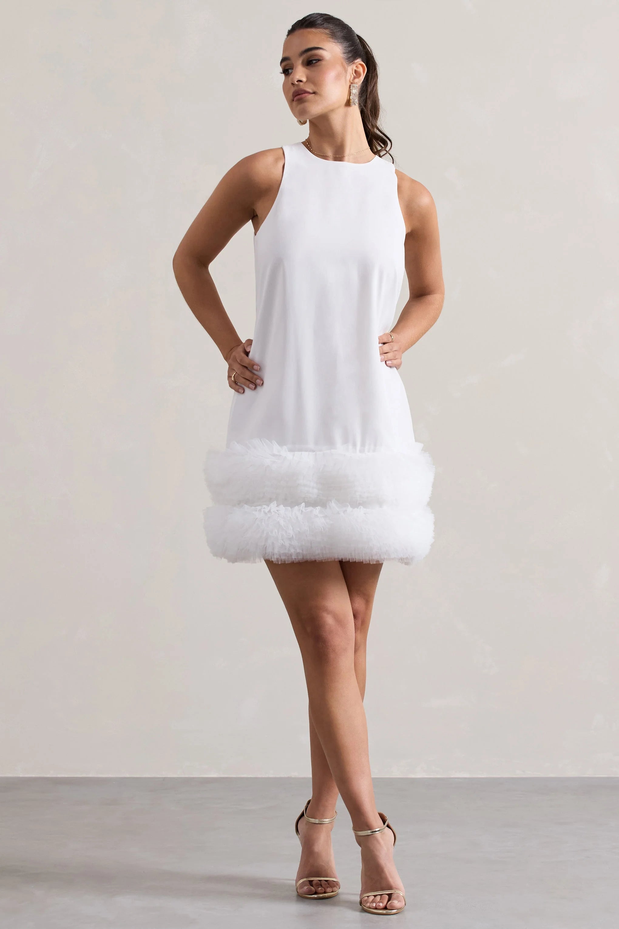 A dress that certainly deserves a toast, say hello to our aptly-named mini Raise A Glass. Crafted in an angelic white shade of our premium crepe, this sweet mini is defined by a tulle hemline that adds a soft feminine charm. From hen parties to birthday events, Raise A Glass is the perfect party piece.