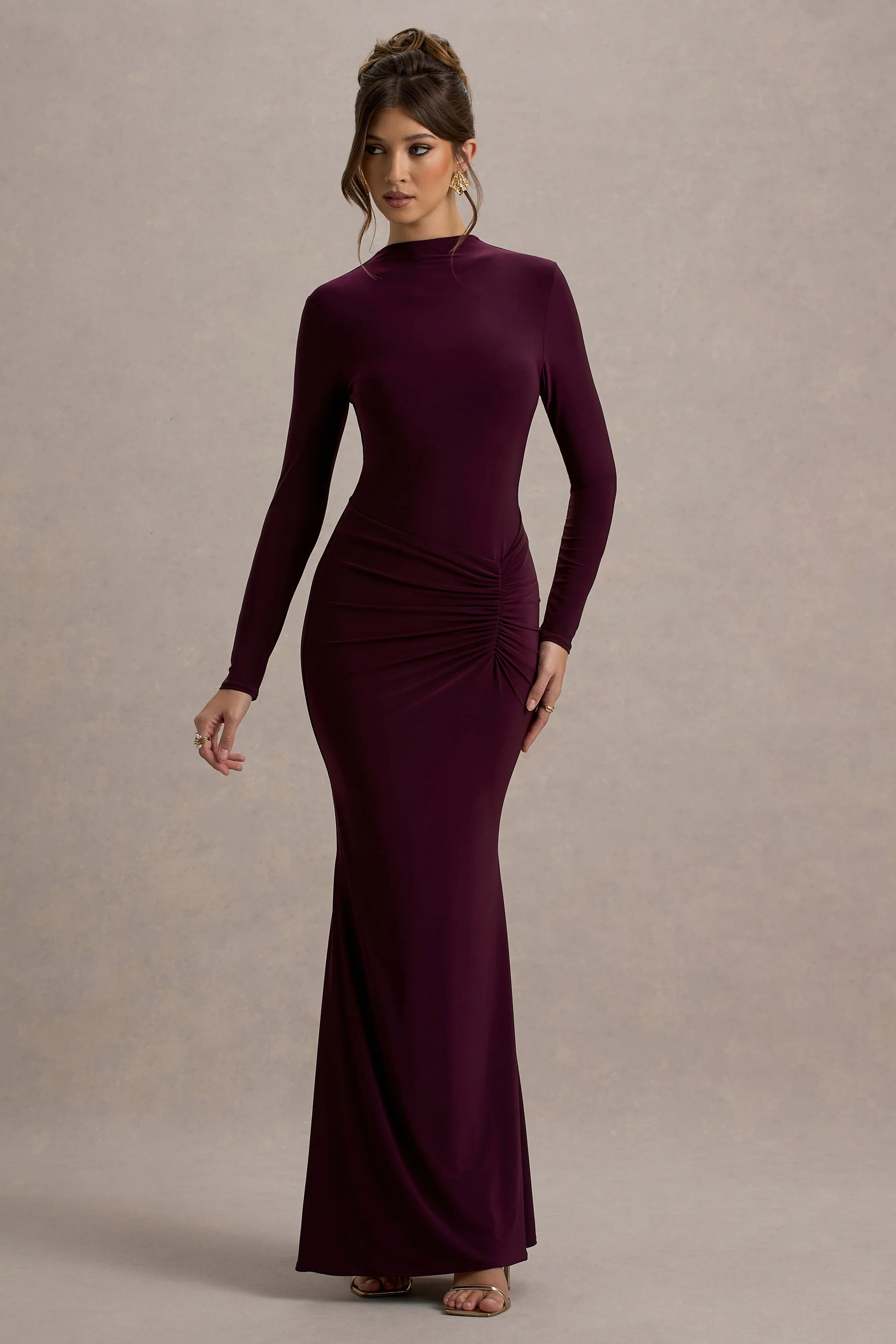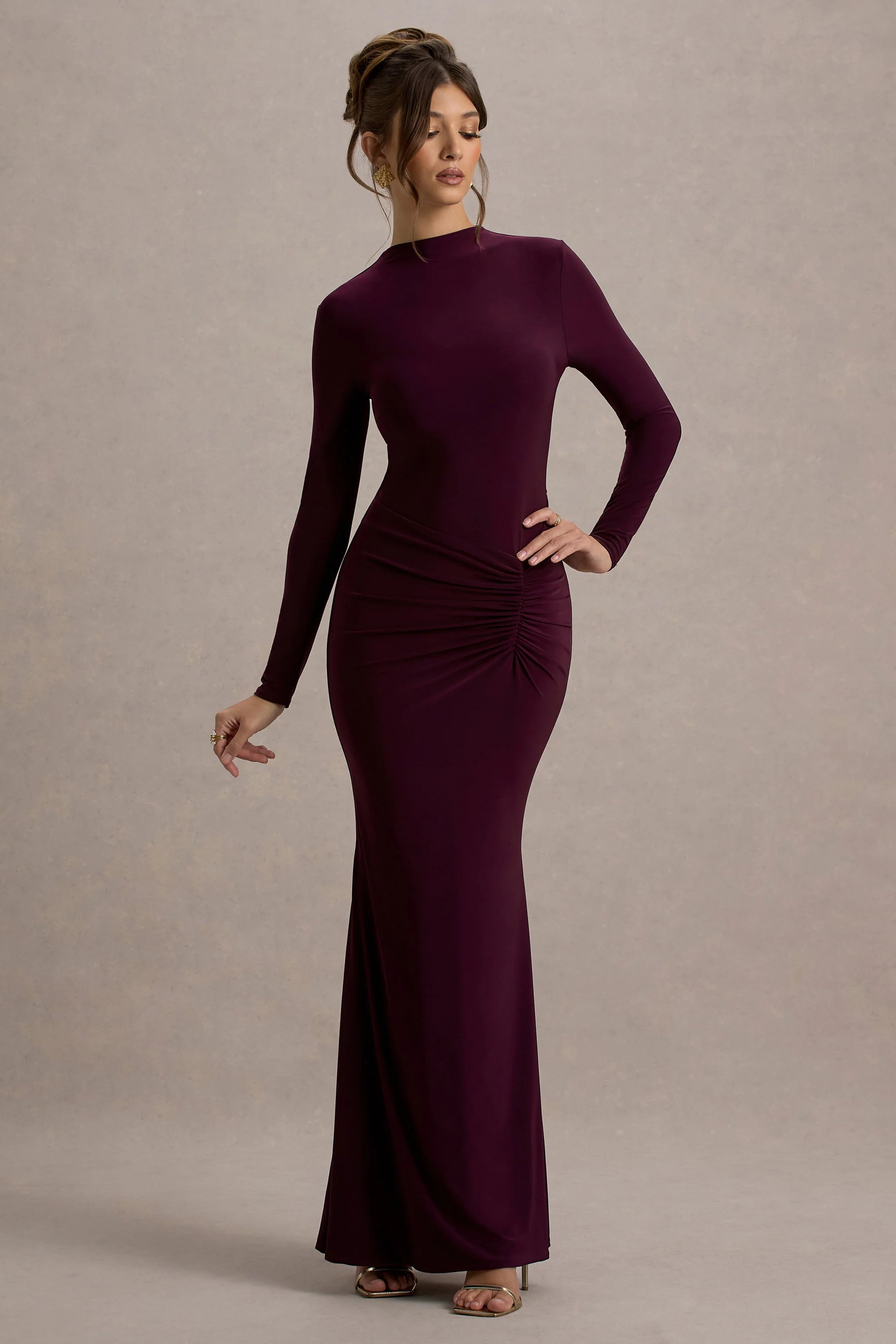 Step into effortless elegance with Reid, a plum-hued maxi dress designed to make an impression. Crafted from our premium jersey, this dress features long sleeves and a flowing silhouette which moves gracefully, making Reid perfect for formal evenings, weddings, or special occasions. Pair it with subtle heels and delicate accents for a look that radiates sophistication and charm.