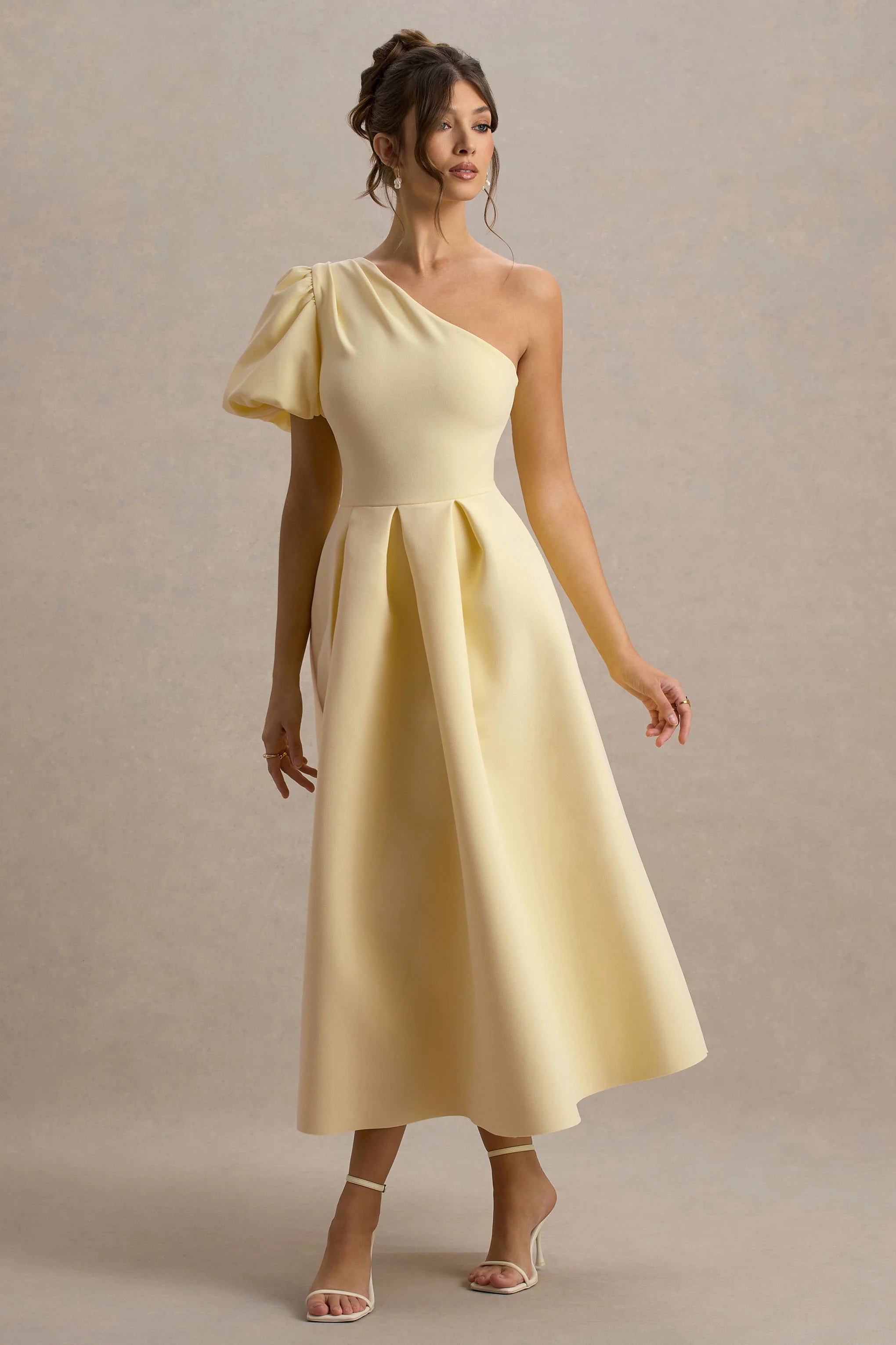 Enter the season with a refreshing style of pleasing pleats and a sweet puff sleeve in Rochelle. Crafted from our premium pale lemon scuba crepe fabric, the midi comes to life with sharp box pleats that stand out from the crowd. With a high waist, Rochelle is the perfect balance of style and comfort for every occasion this year.