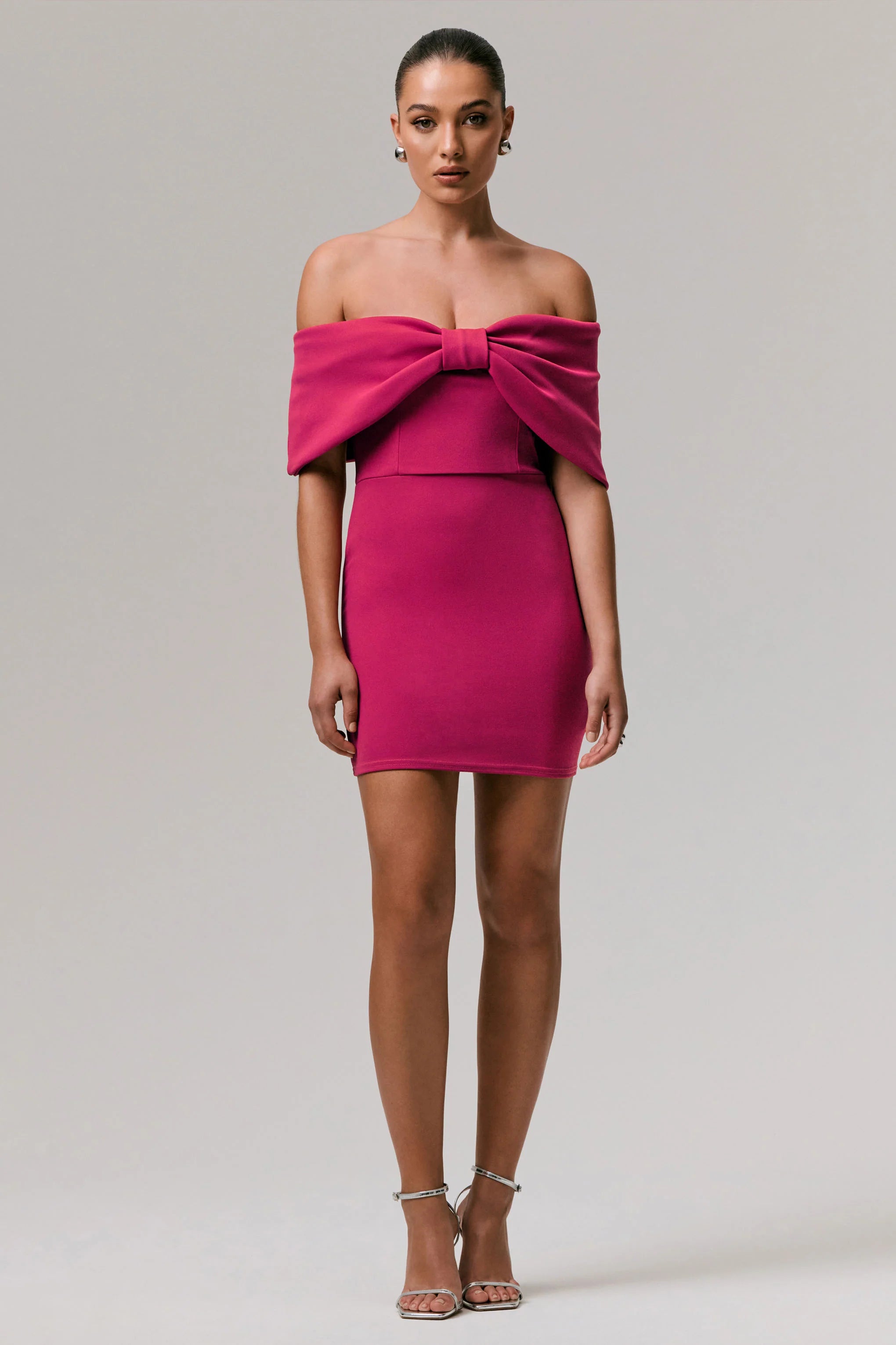 If you're looking for a mini that's as chic as it is romantic, then Sadie is the perfect answer. With an adorable bow detail that transforms into sleeves with a sweetheart neckline, everyone will want to know where you got this from! Handcrafted from premium hot pink scuba crepe fabric, the silhouette will keep you fitted and comfortable at all times.