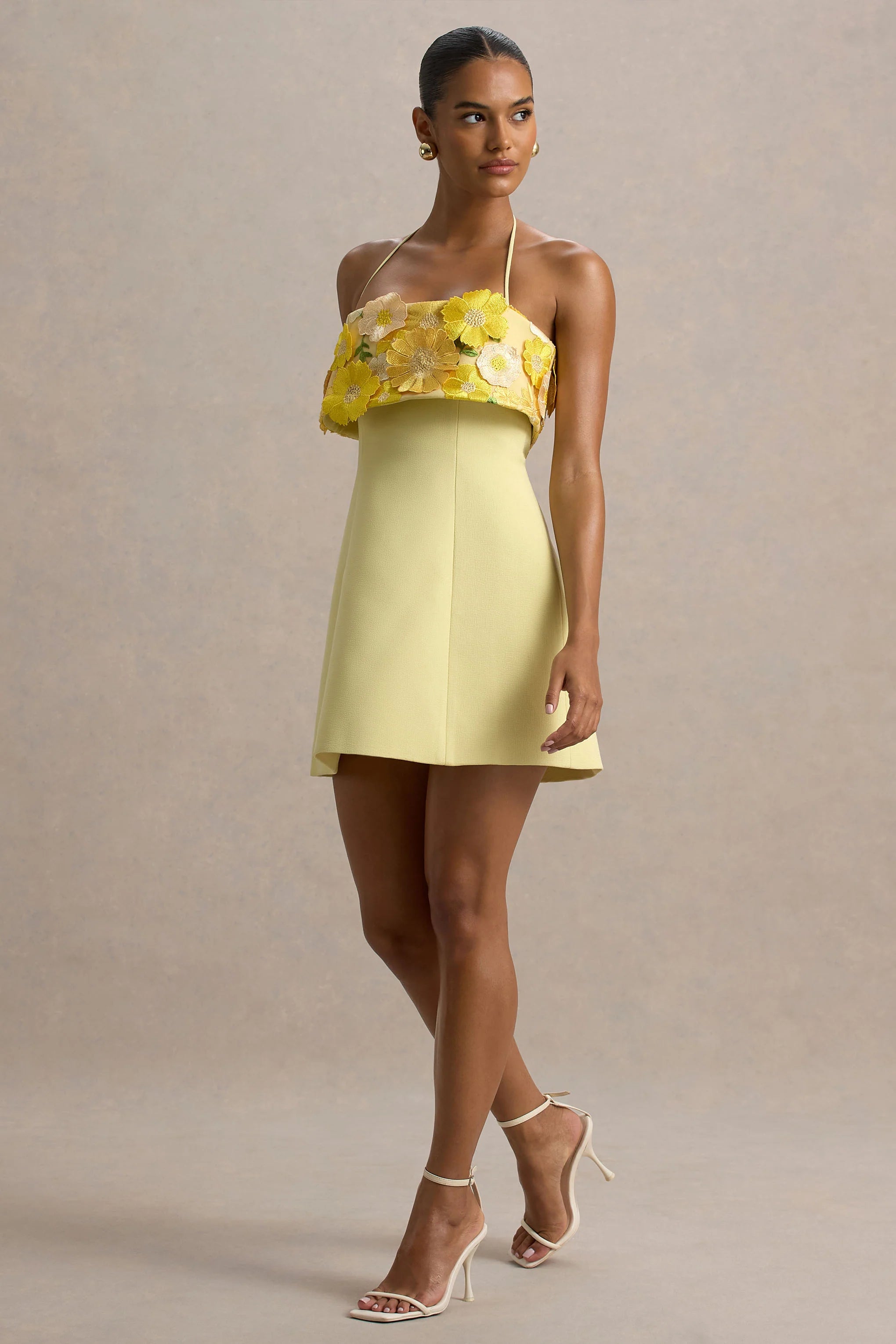 Floral and flirty, our Shelley mini is here to steal the spotlight. Crafted in a soft lemon hue of our premium crepe and finished with an intricate, floral panel, this mini dress draws attention and gorgeously sculpts your curves. The detailed bandeau neckline elevates this look, ensuring an effortlessly elegant finish. Completed with a delicate self tie halter-neck that adds a stunning back detail to this piece. From race days to sunset cocktails, Shelley is the ultimate summer mini to add to your rotation.