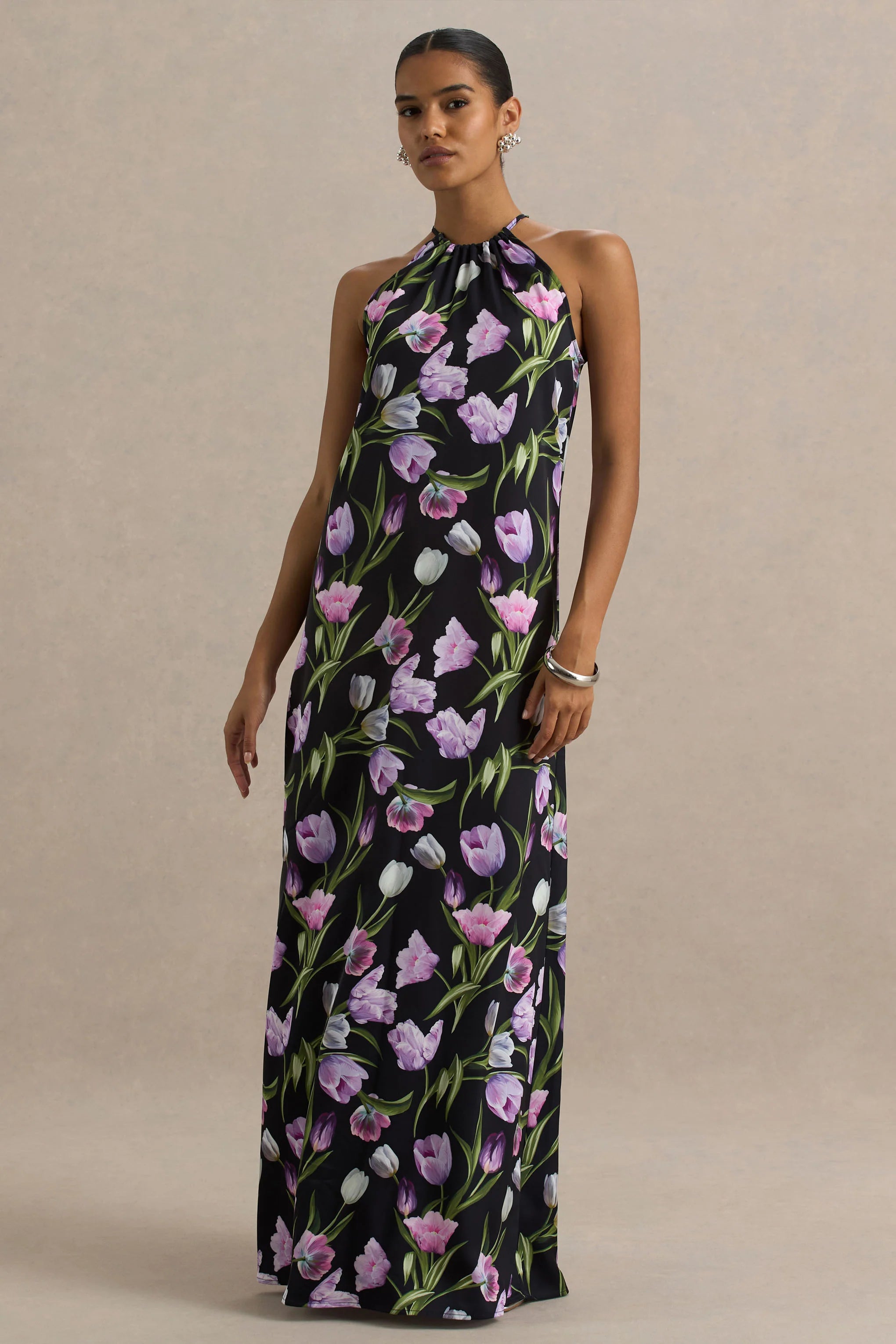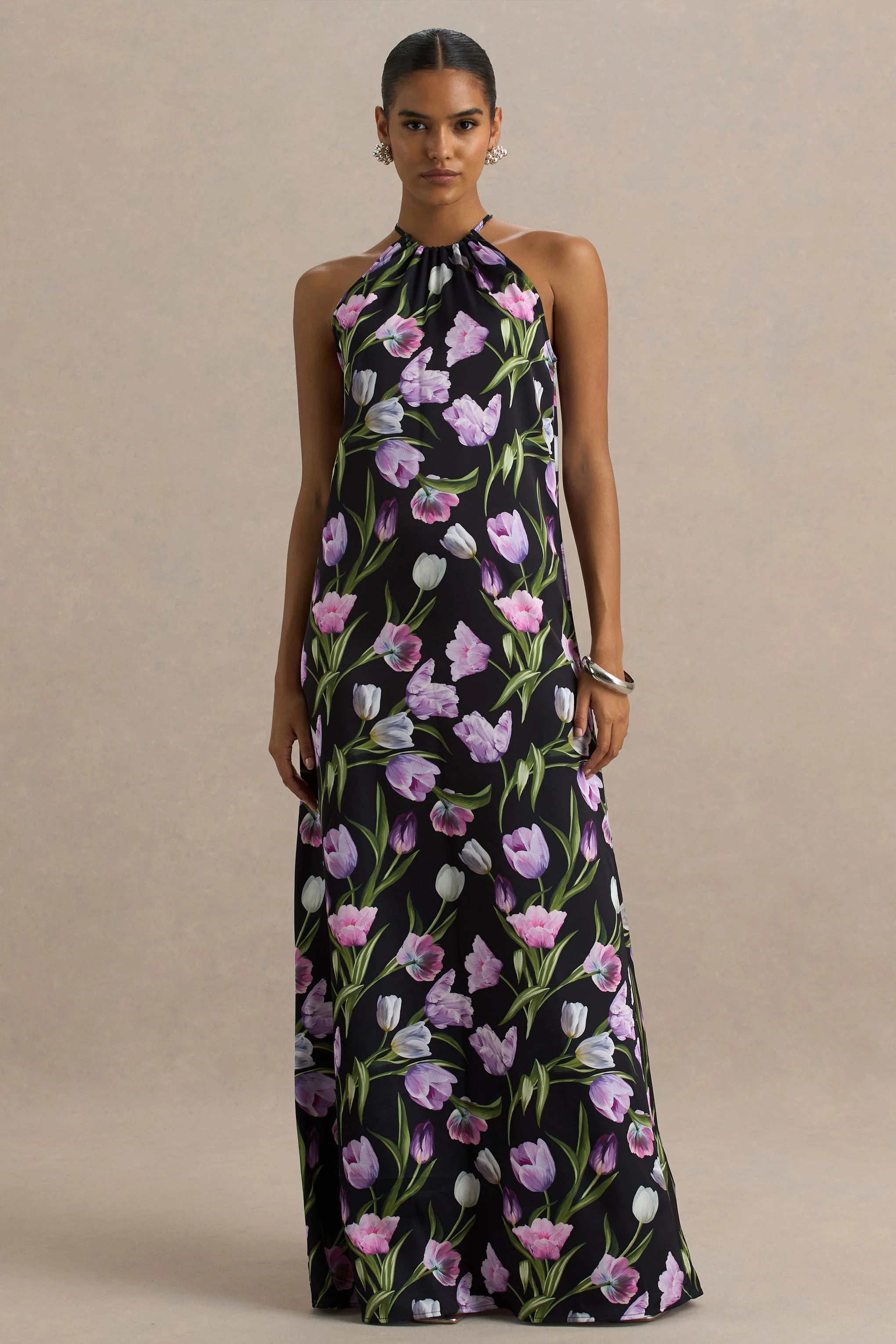 Take the rooms breath away with your elegance in Svana. Curated in a black floral print of our premium satin, this gown skims over your curves, effortlessly sculpting your silhouette. Finished with an asymmetric, halter neckline that brings a modern edge to this timeless piece. From weddings to black tie galas, Svana will see you through all occasions this season.