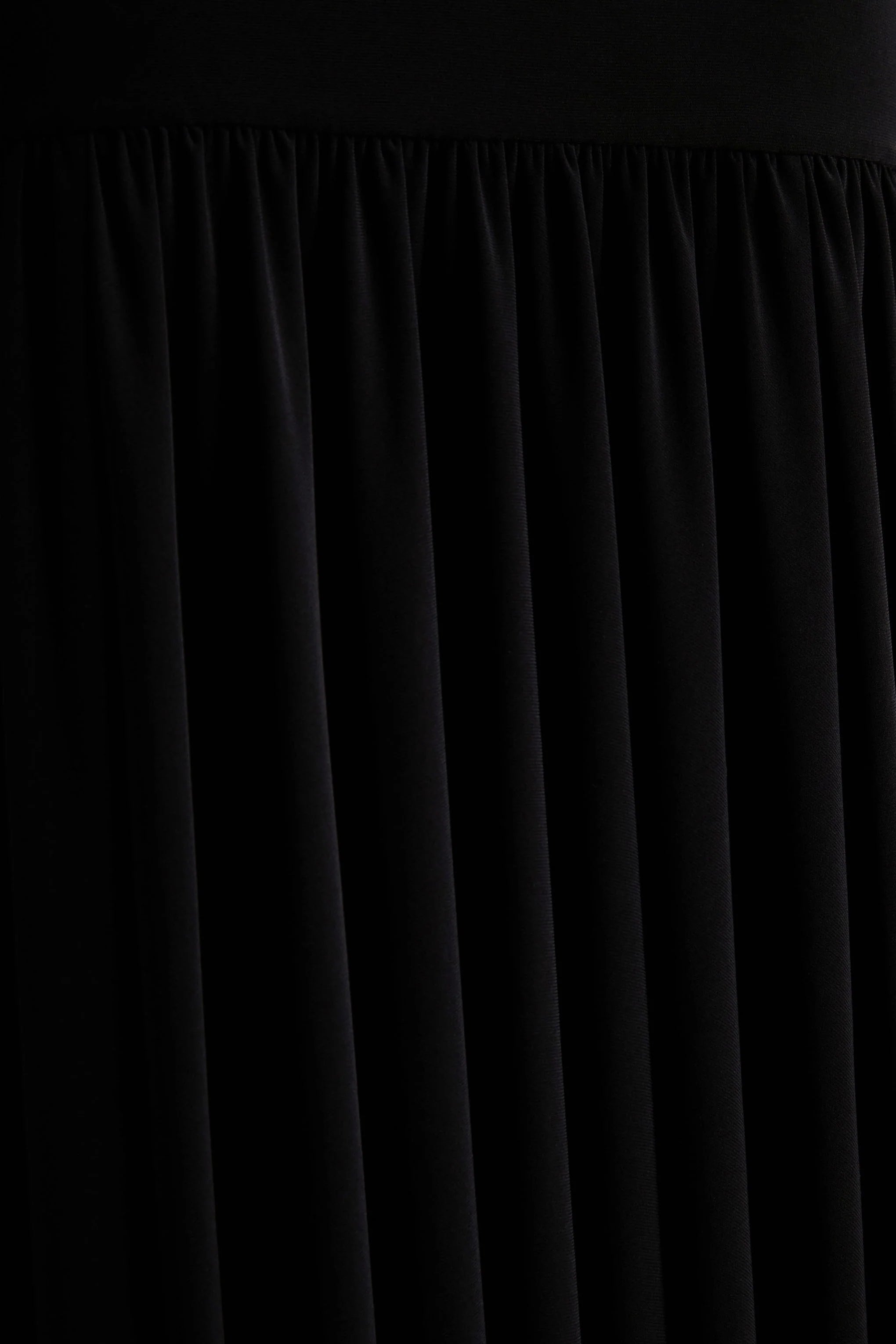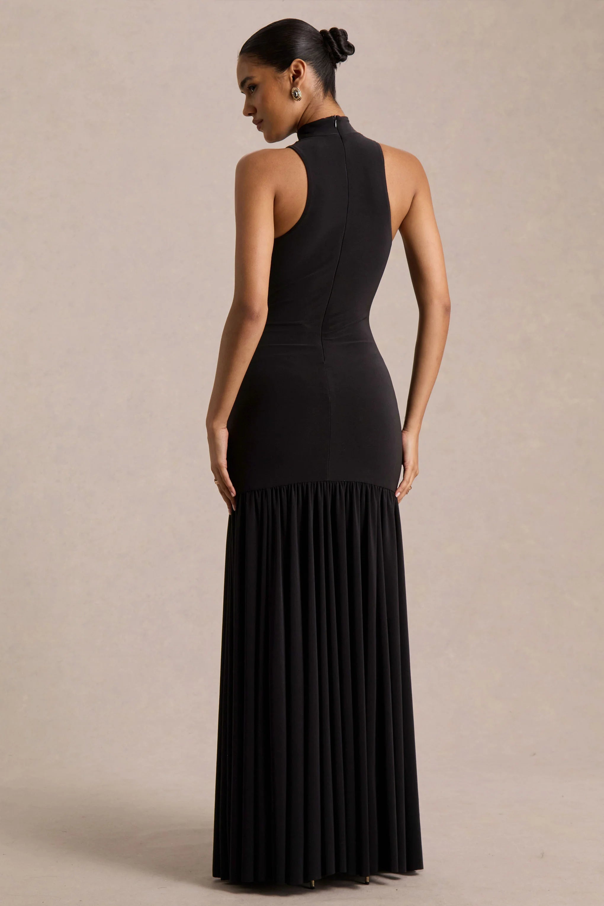 Turn heads effortlessly in Tasmin, a maxi dress that exudes understated elegance. Crafted in a rich black hue of our premium stretch jersey, its sleeveless design and maxi length create a flattering silhouette that drapes beautifully over the body. Featuring a sophisticated high neckline and a chic drop waist, this piece combines classic tailoring with contemporary style. Perfect for evening events or special occasions, Tasmin offers a sleek look with effortless glamour.