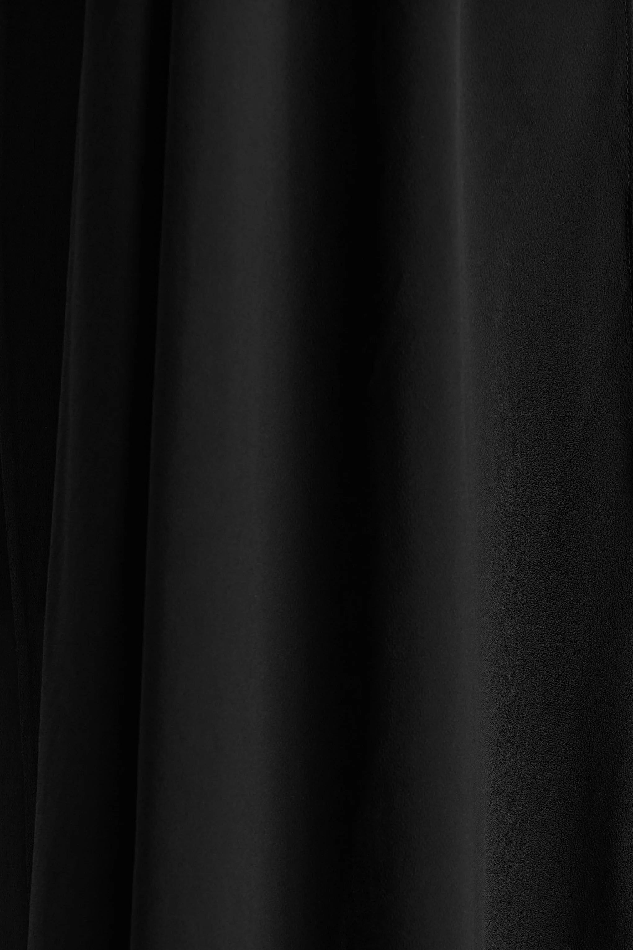 Introducing Unpredictable, a bold and breathtaking piece for your next occasion. This maxi dress stuns in a rich black hue, crafted from our premium double georgette and finished with a striking high neckline. The dramatic back cape detail adds an ethereal elegance, while the sheer skirt offers a sultry contrast to the structured silhouette. This floor-sweeping design is made to captivate with every step, style with sleek heels and gold accessories for an enchanting look.