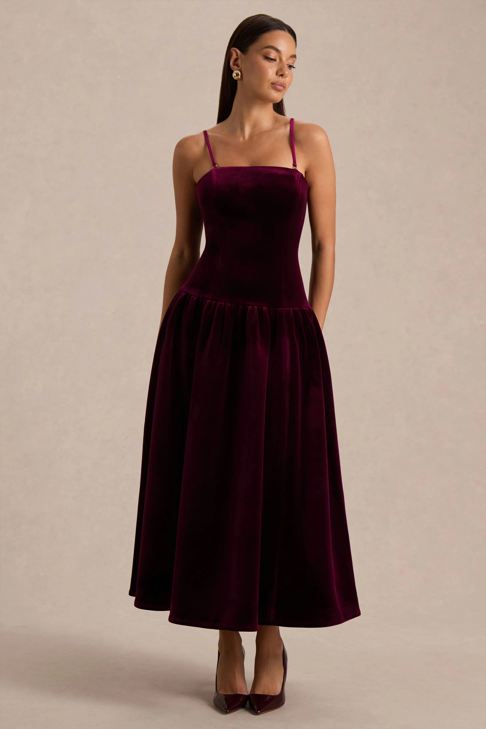 Say hello to timeless elegance with Violetta. Crafted from our premium velvet in a rich burgundy hue, this piece is both parts understated and impactful. Featuring a chic bandeau neckline and removable straps that frames the shoulders beautifully whilst the drop-waist silhouette flows into a gathered skirt, creating graceful movement with every step. Violetta is a statement style perfect for evening soirées and special occasions.